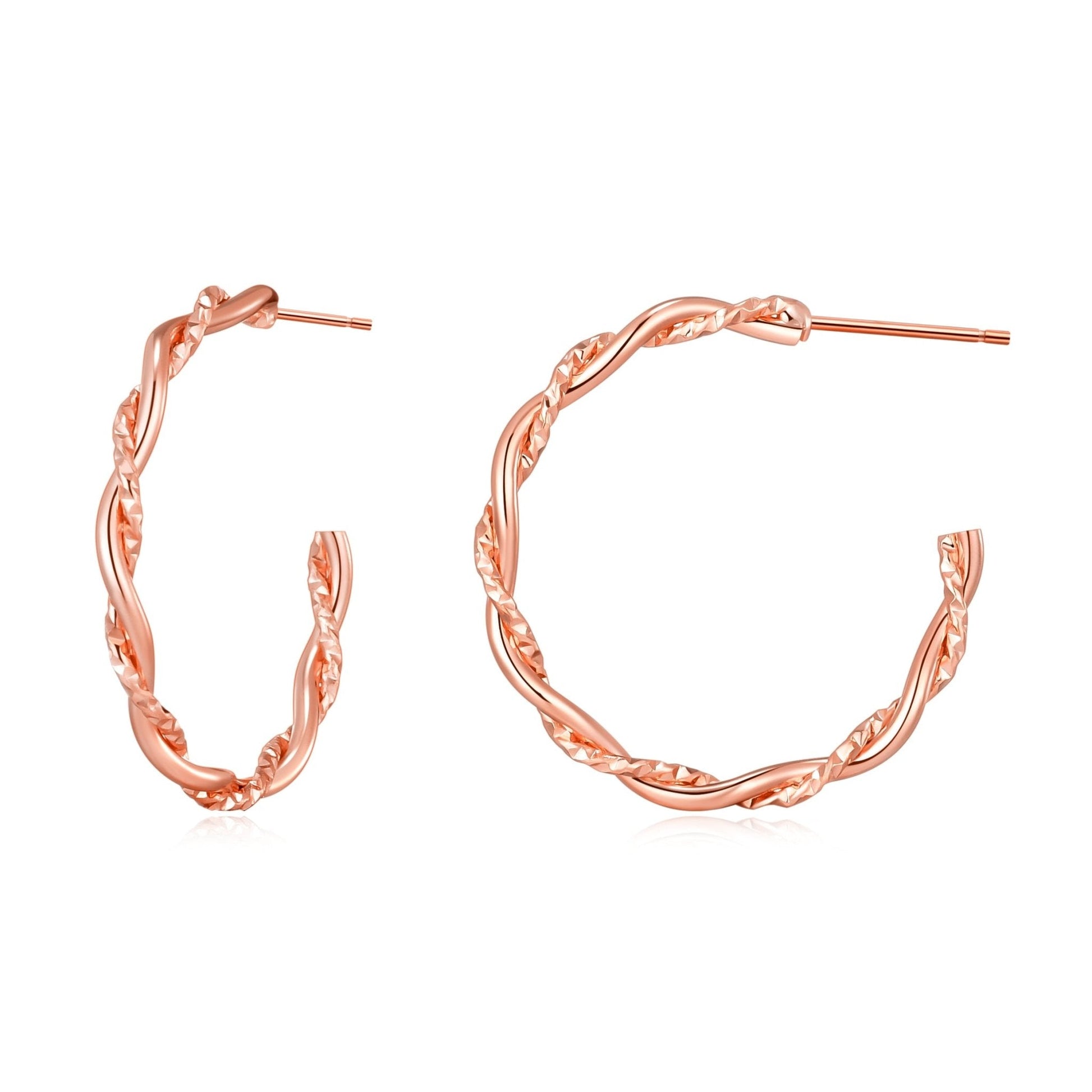 Rose Gold Plated 30mm Twisted Diamond Cut Hoop Earrings