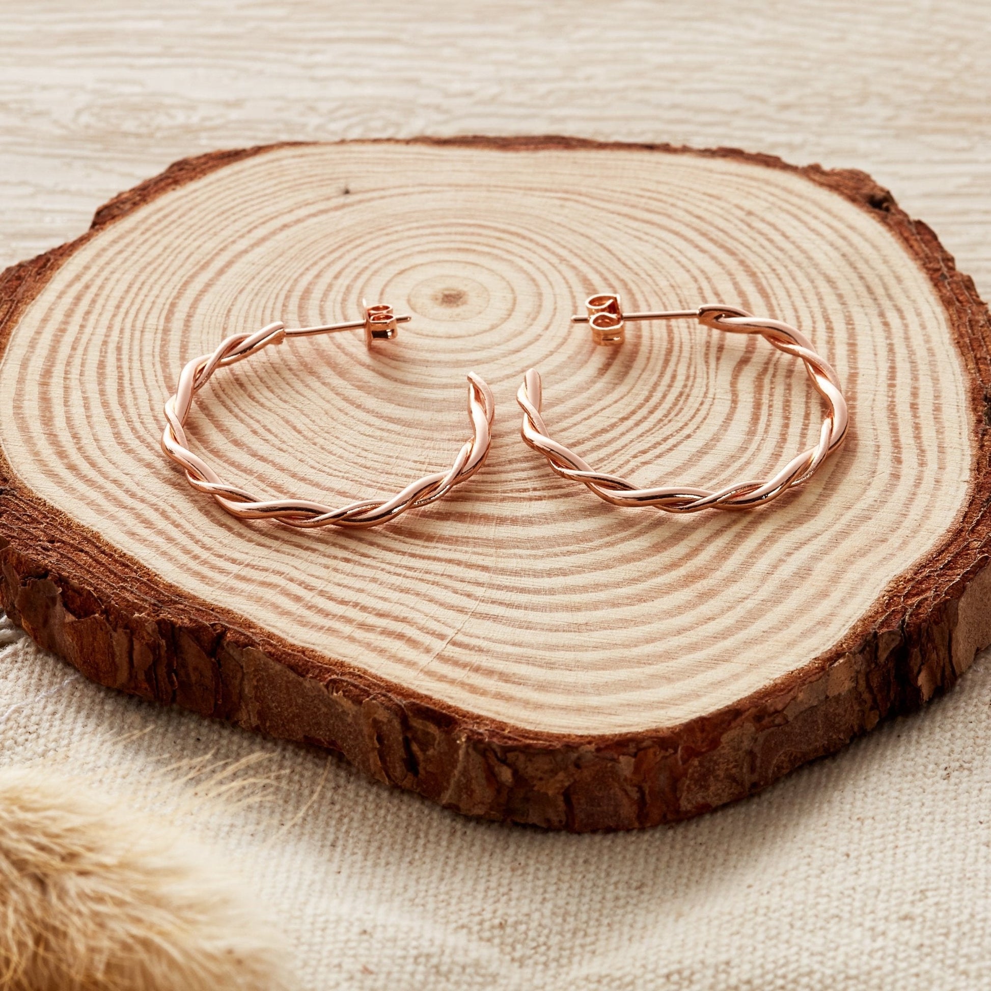 Rose Gold Plated 30mm Twisted Hoop Earrings