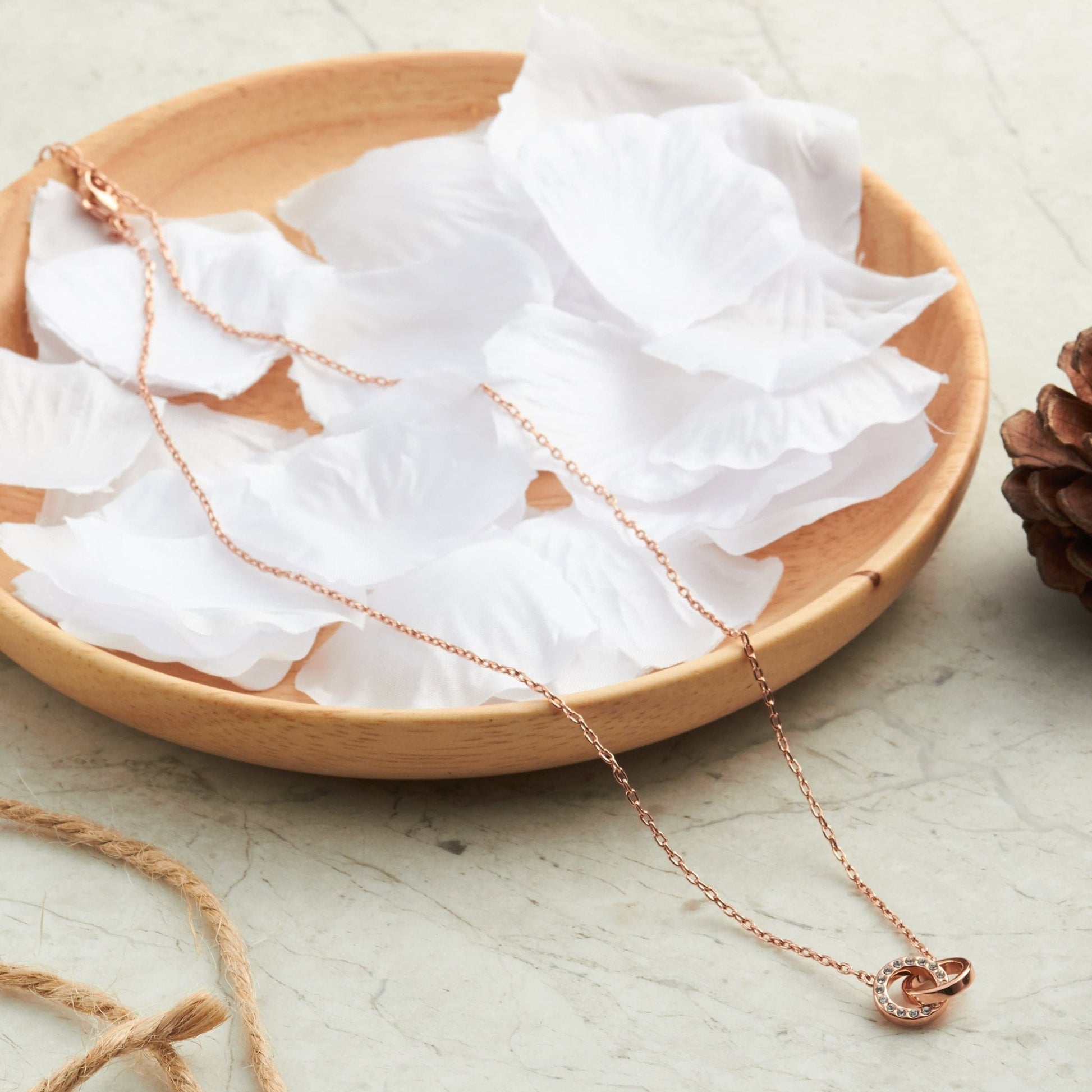 Experience the beauty of rose gold and sparkle of Zircondia® crystals with our Circle Link Necklace. Hypoallergenic and crafted with attention to detail, this necklace features a stunning 18mm pendant and 43cm chain with a 5cm extender. Each of the 16 round crystals adds a touch of elegance and comes packaged in a charming 5cm x 7cm gift pouch.