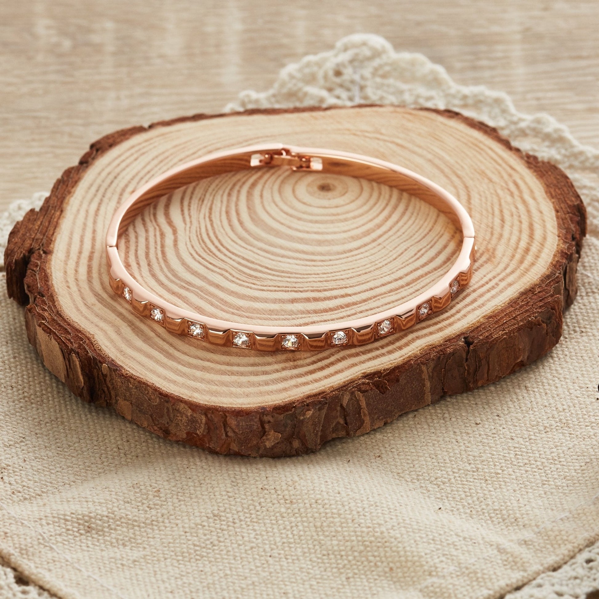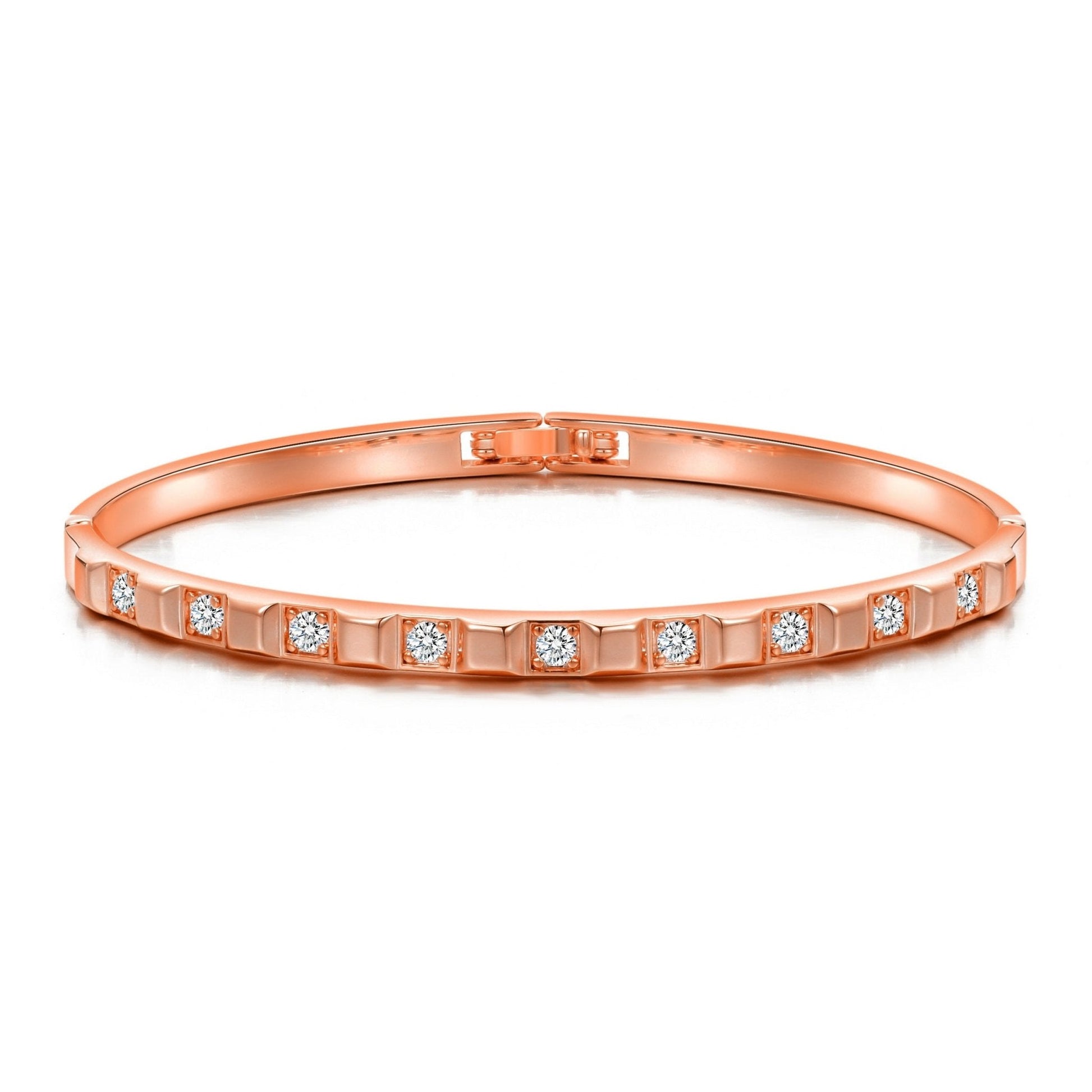 Rose Gold Plated Cubic Bangle Created with Zircondia® Crystals (7 Inch)