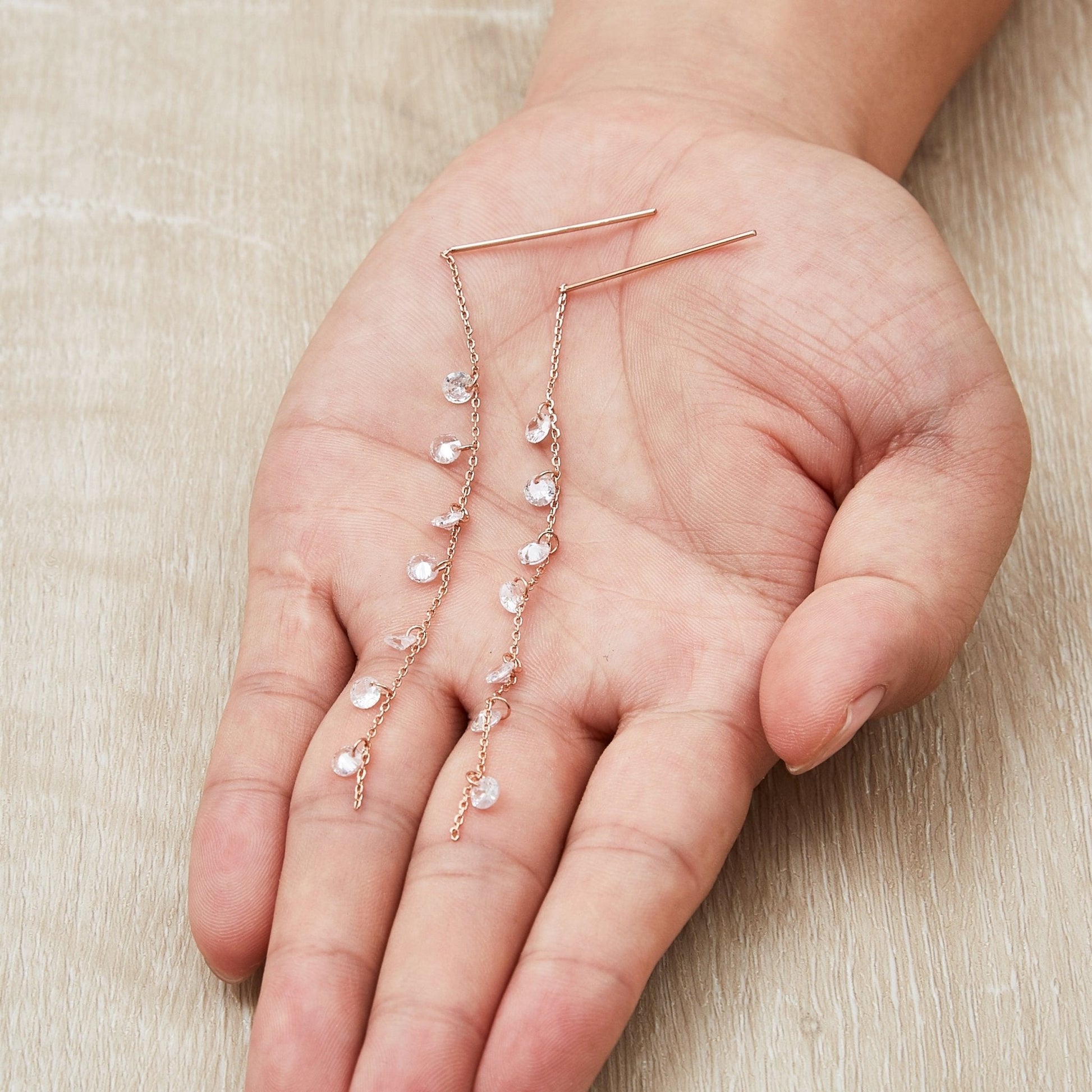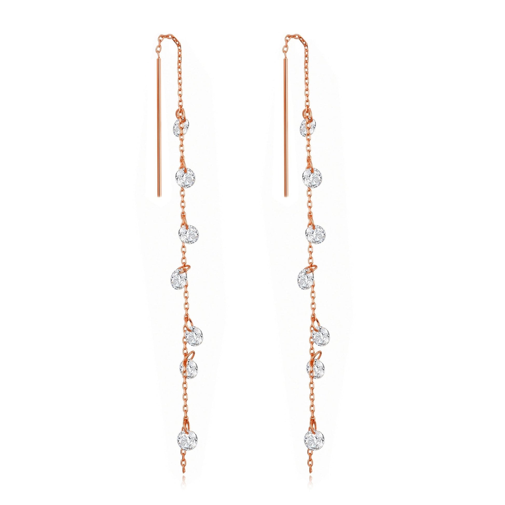 Rose Gold Plated Dangle Thread Earrings Created with Zircondia® Crystals