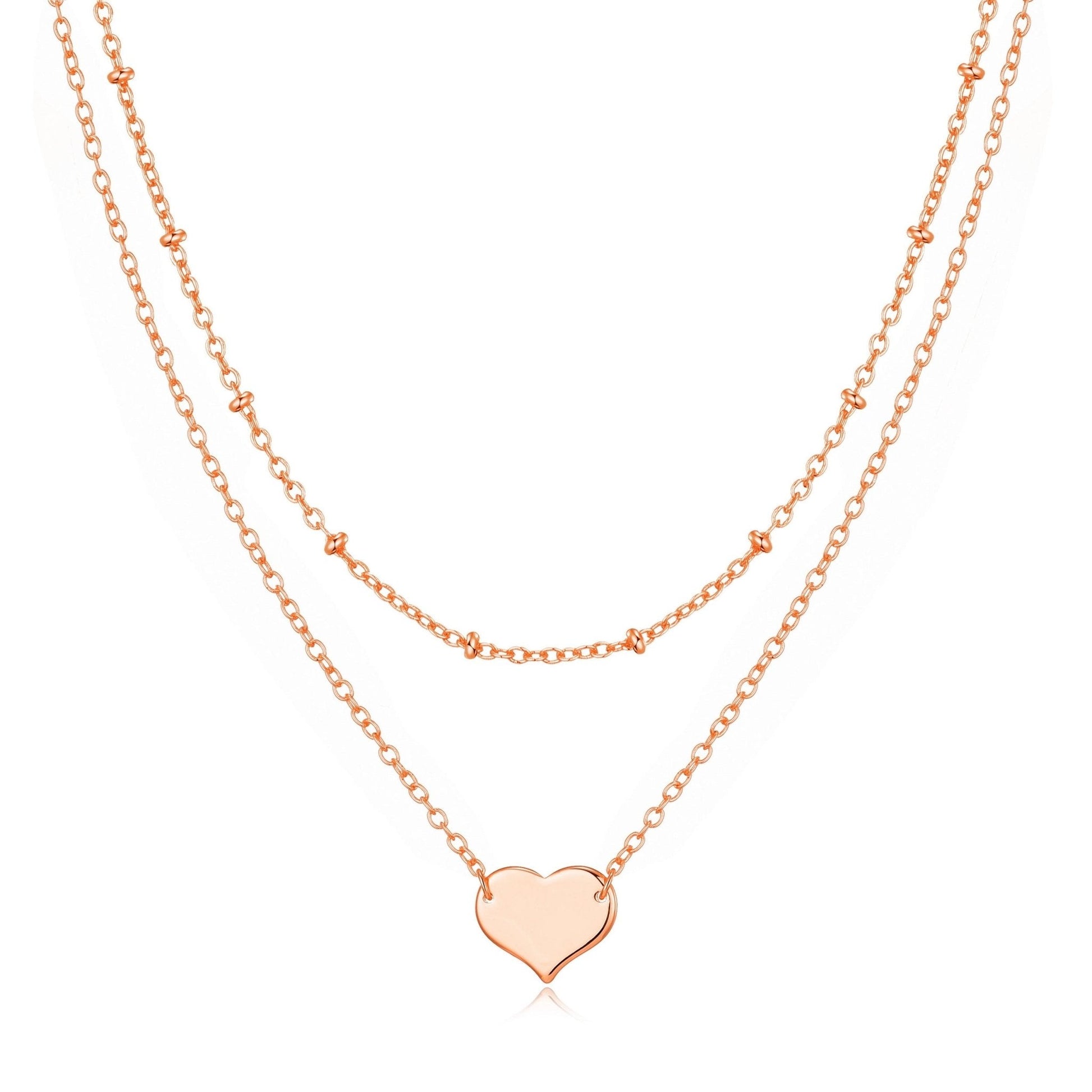 Rose Gold Plated Double Layered Heart Necklace