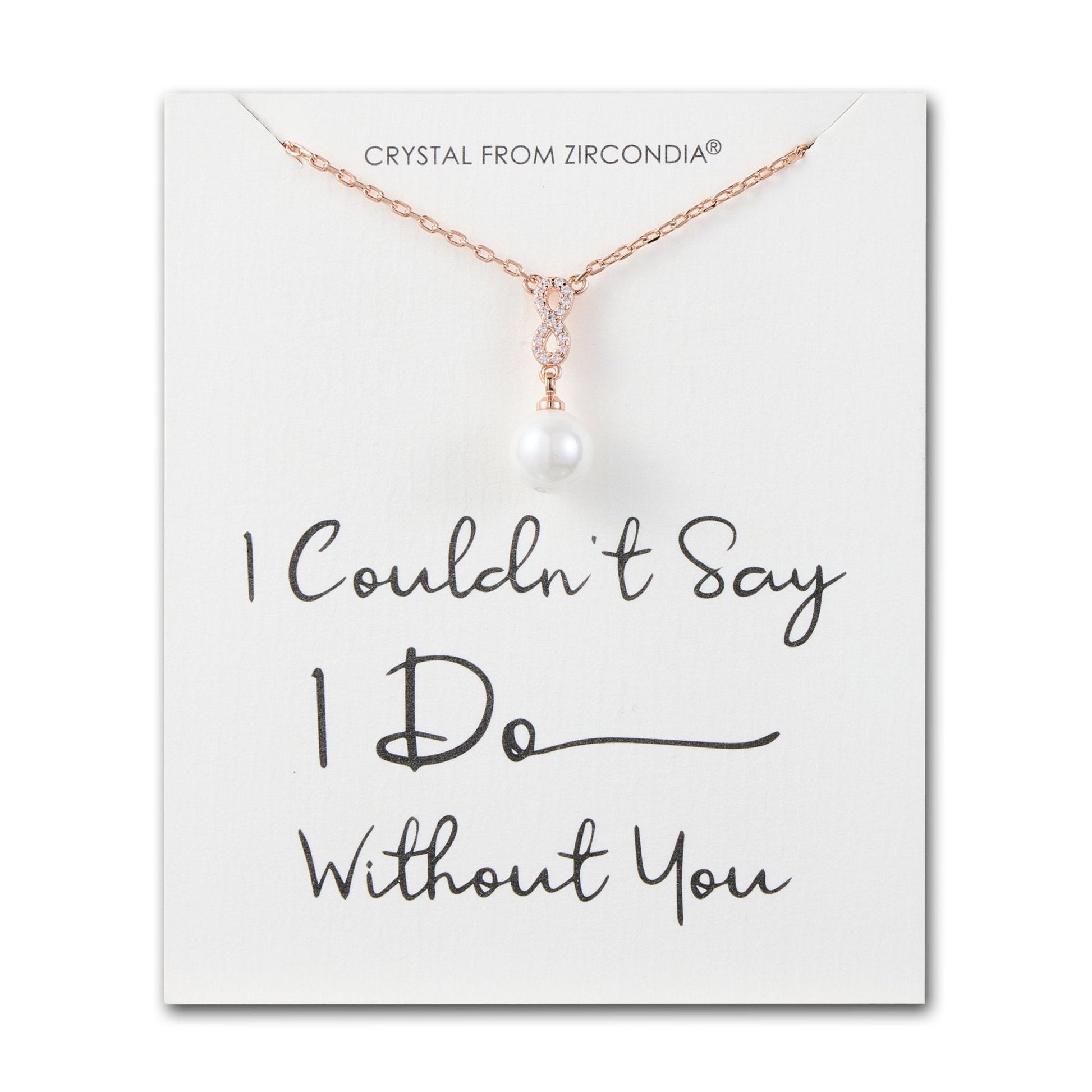 Rose Gold Plated I Couldn't Say I Do Without You Infinity Pearl Bridal Drop Necklace with Zircondia® Crystals