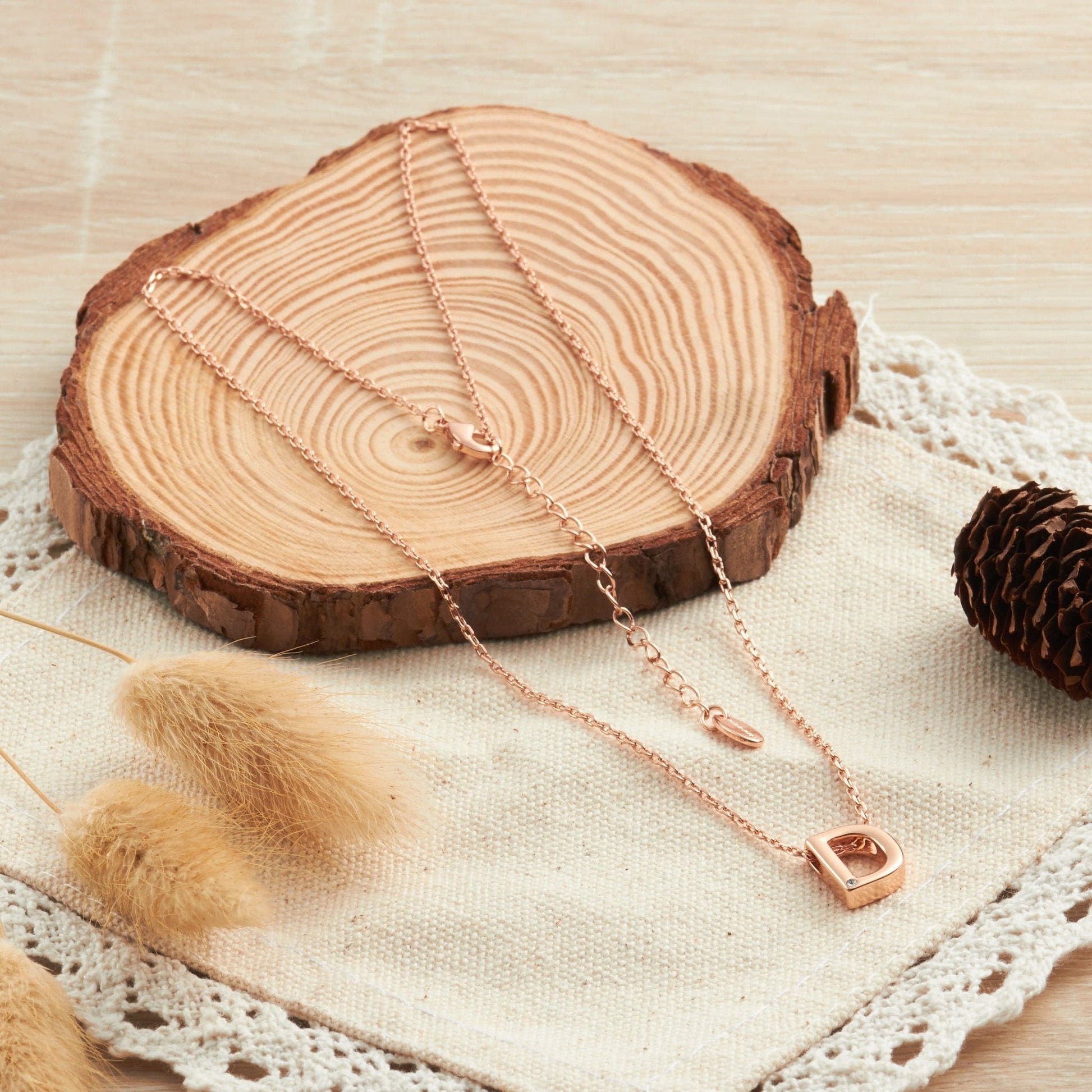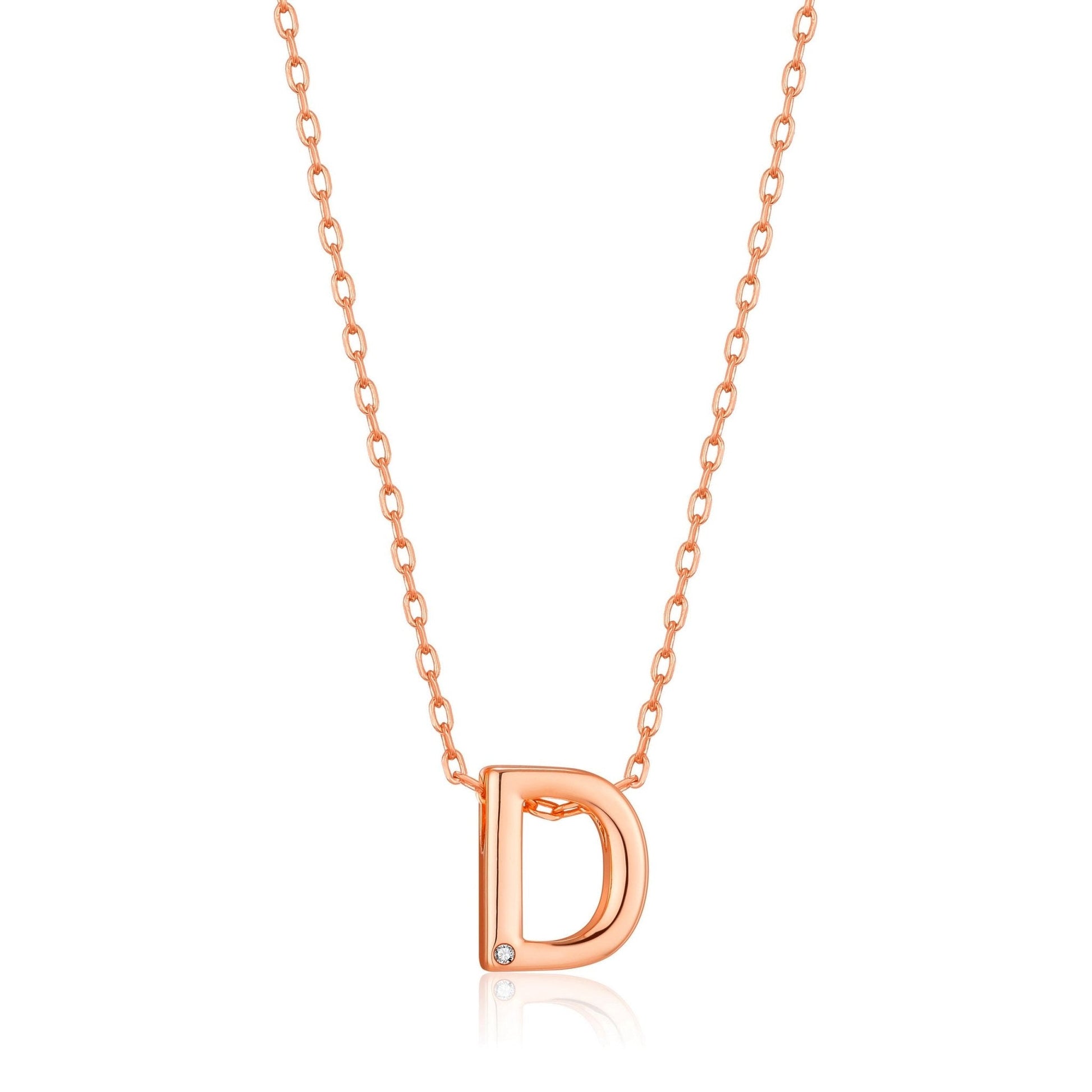 Rose Gold Plated Initial Necklace Letter D Created with Zircondia® Crystals18705