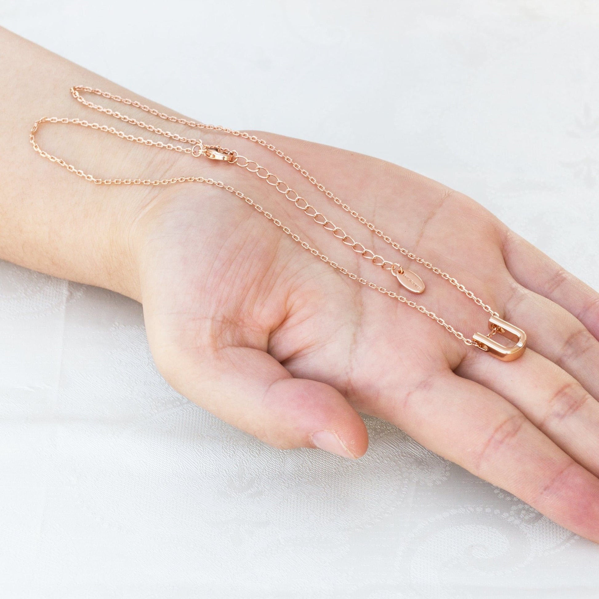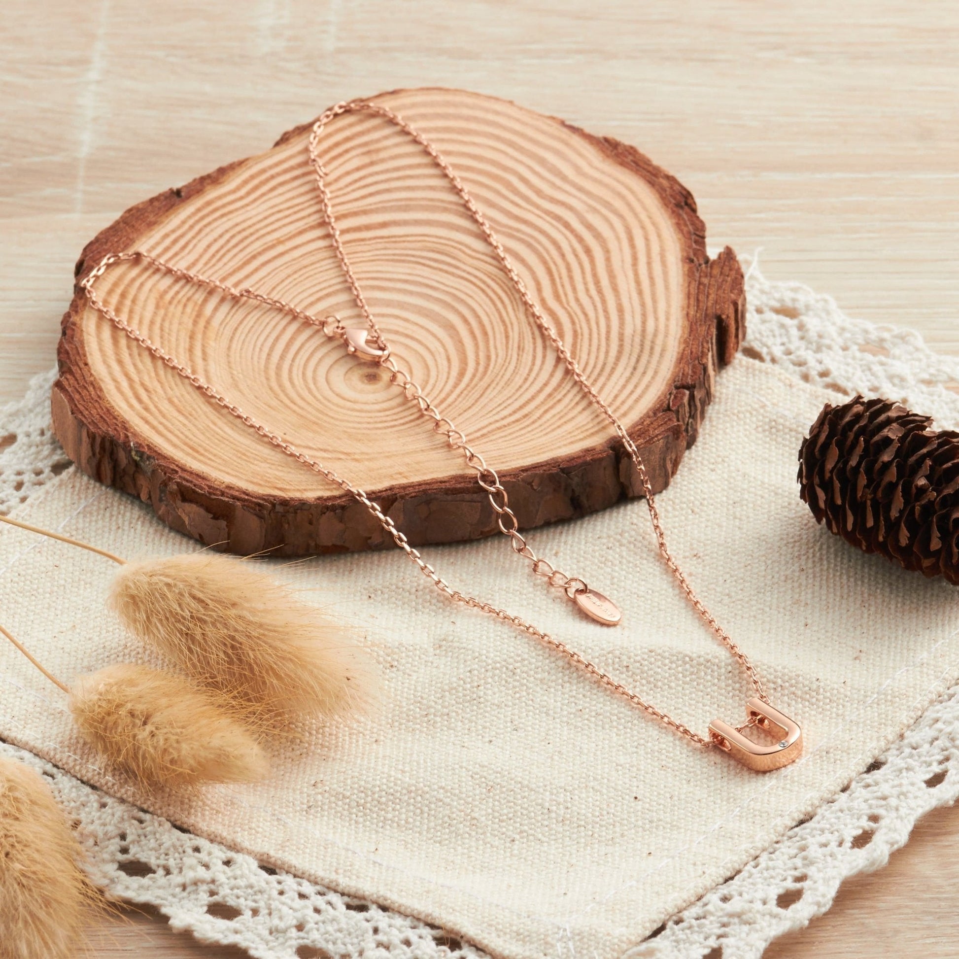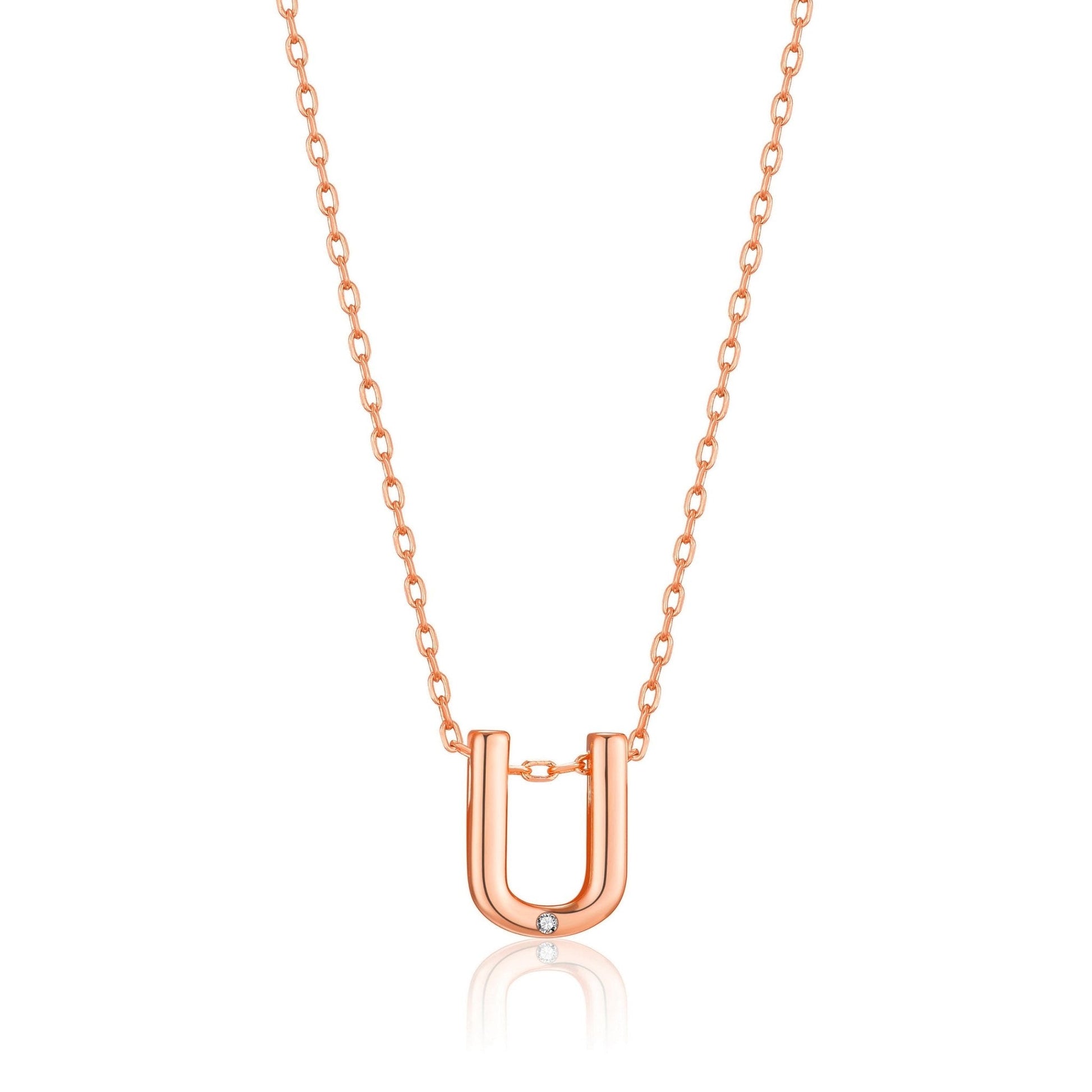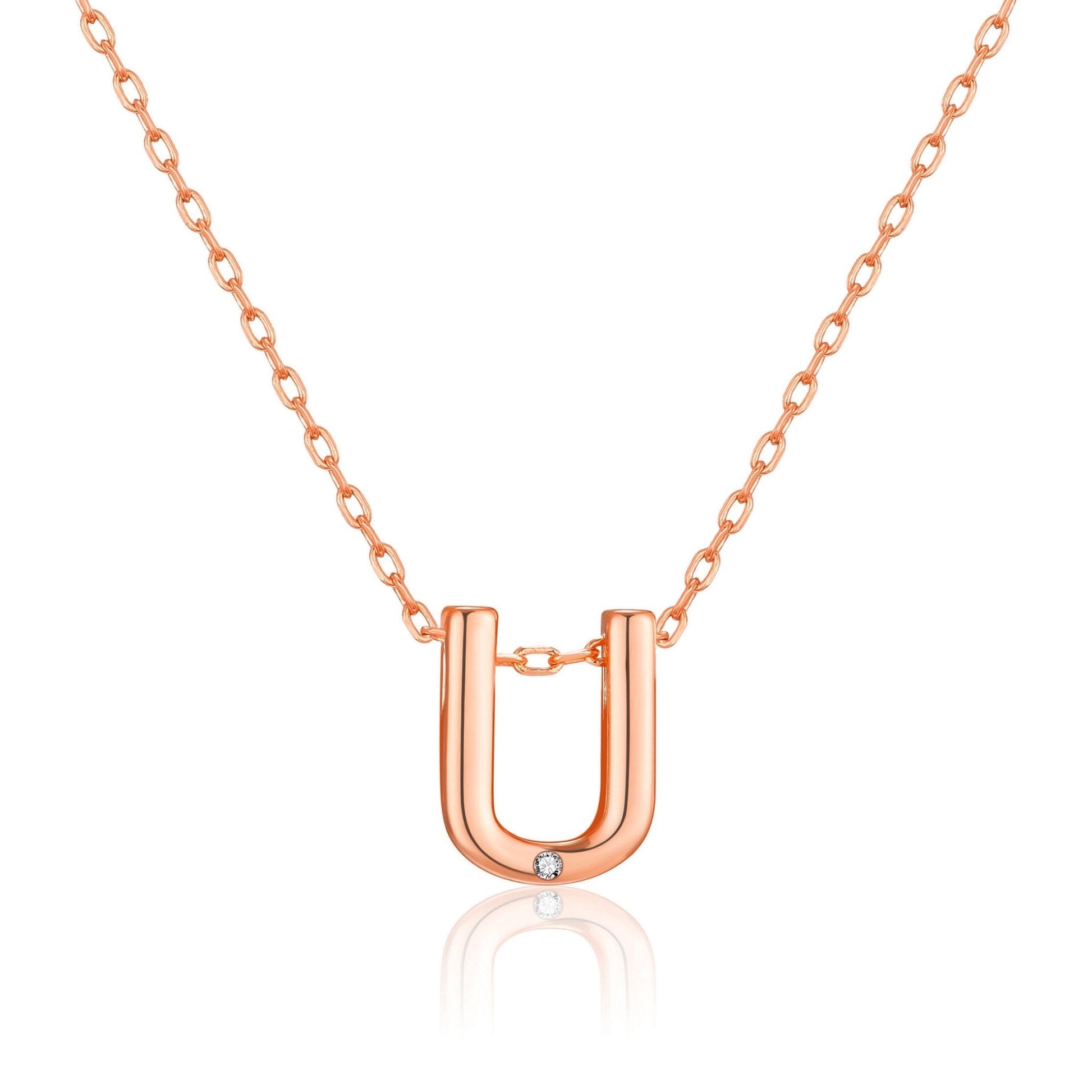 Rose Gold Plated Initial Necklace Letter U Created with Zircondia® Crystals
