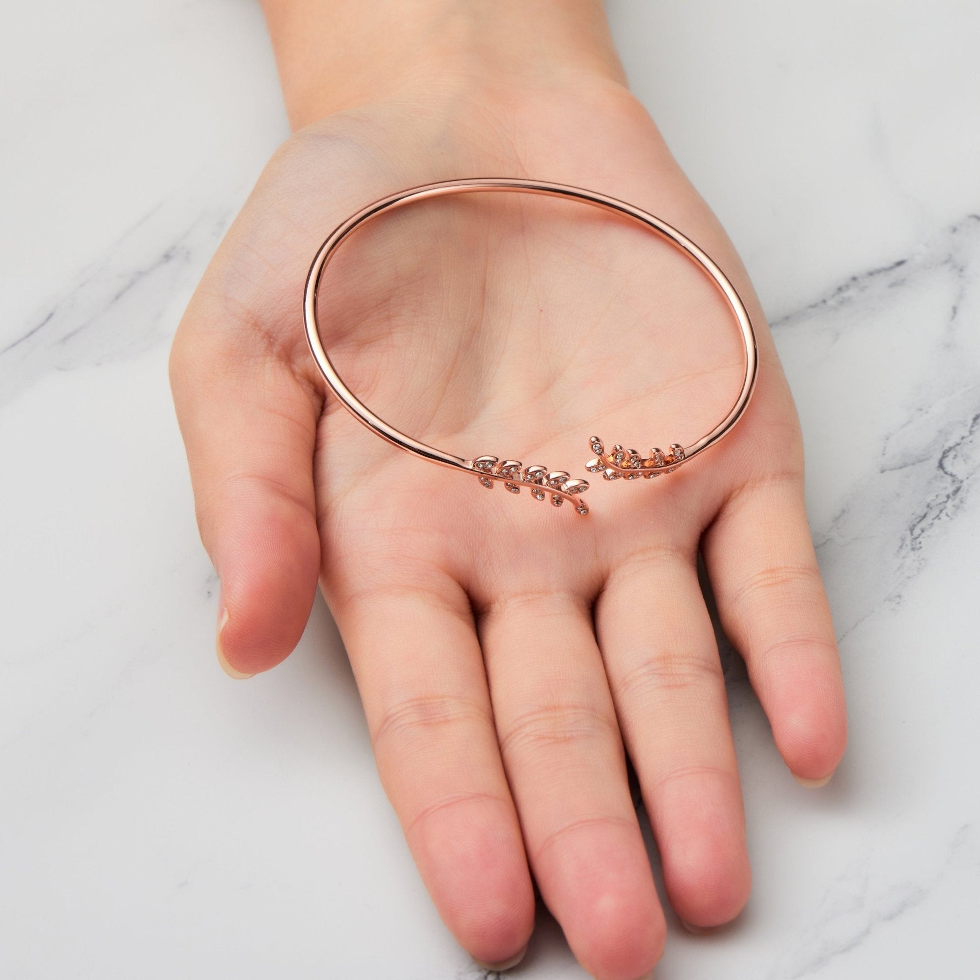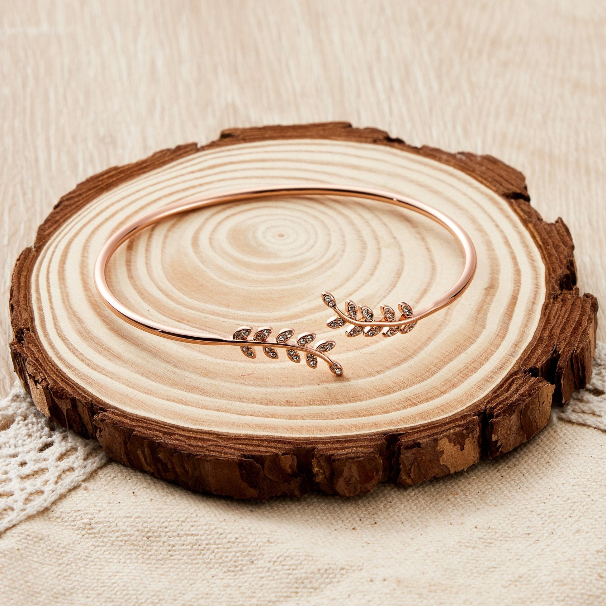 Rose Gold Plated Leaf Bangle Created with Zircondia® Crystals