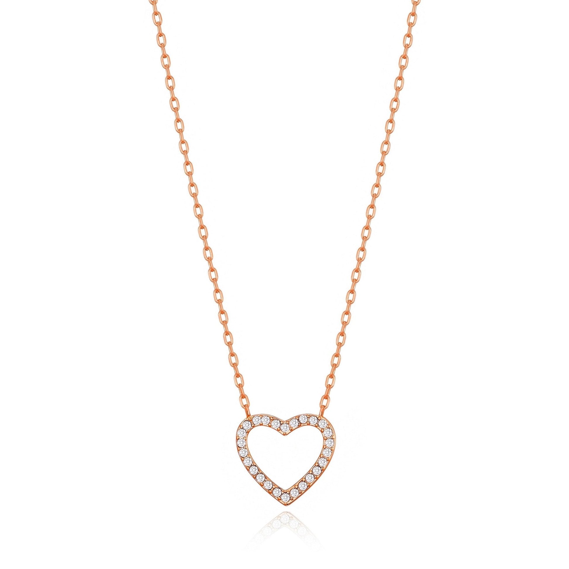 Rose Gold Plated Open Heart Necklace Created with Zircondia® Crystals