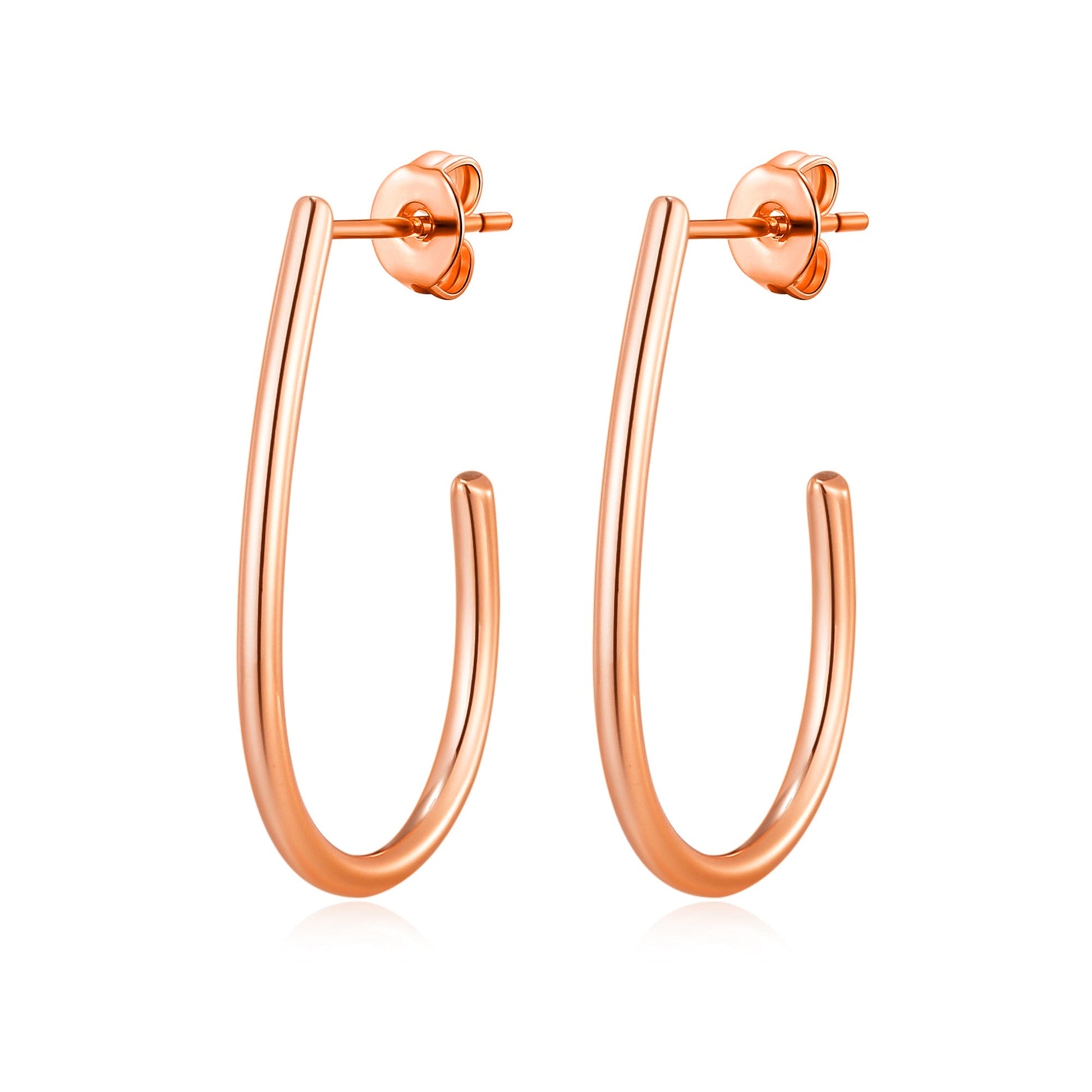 Make a statement with these elegant rose gold plated oval hoop earrings from Philip Jones. Featuring a high polished finish for added shine and a hypoallergenic base metal, you'll never worry about looking or feeling your best. An easy-to-close butterfly closure adds a secure hold. A perfect gift for yourself or someone special.