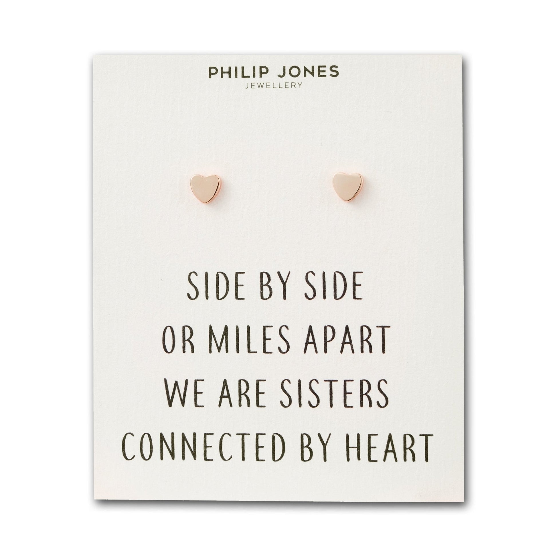 Rose Gold Plated Sister Heart Stud Earrings with Quote Card