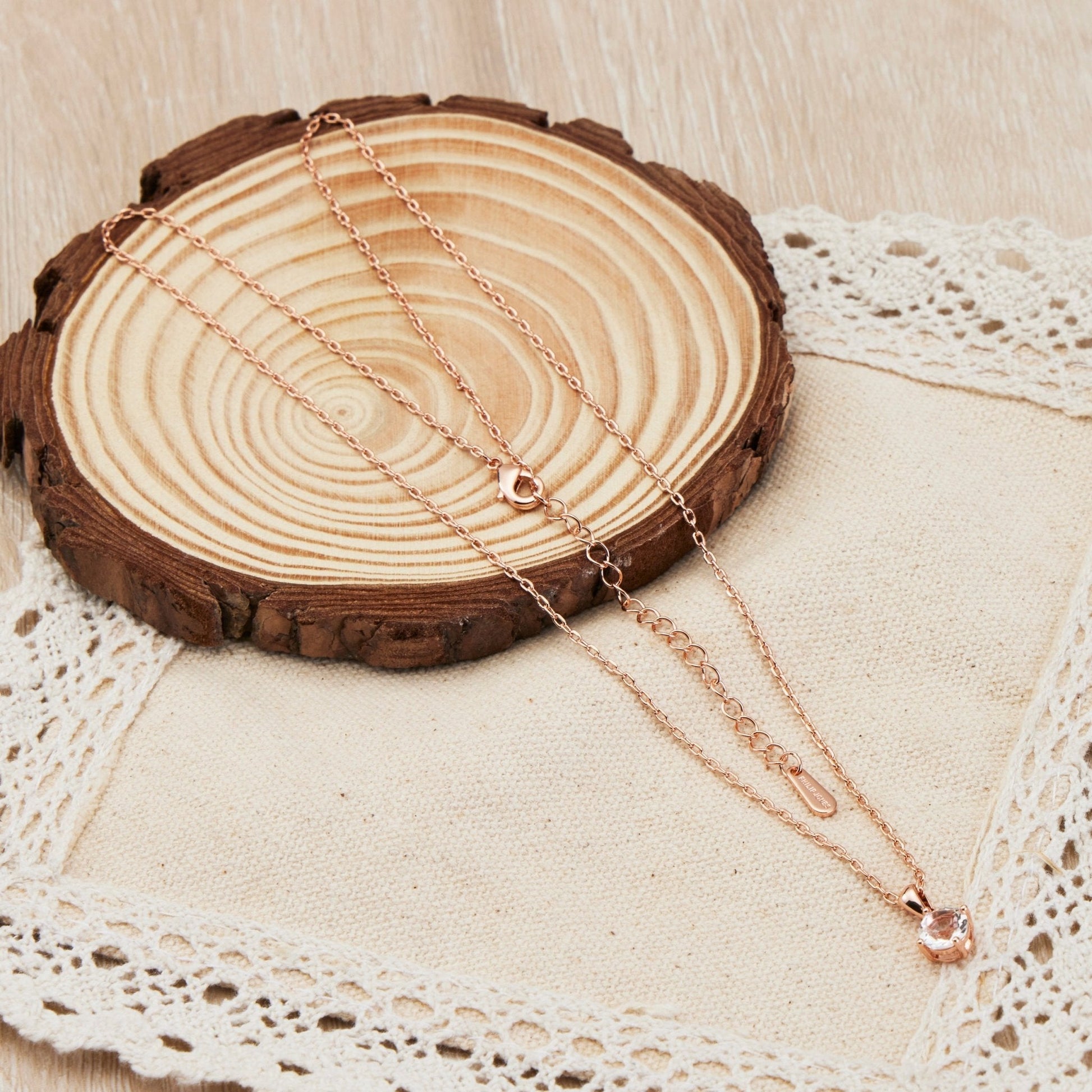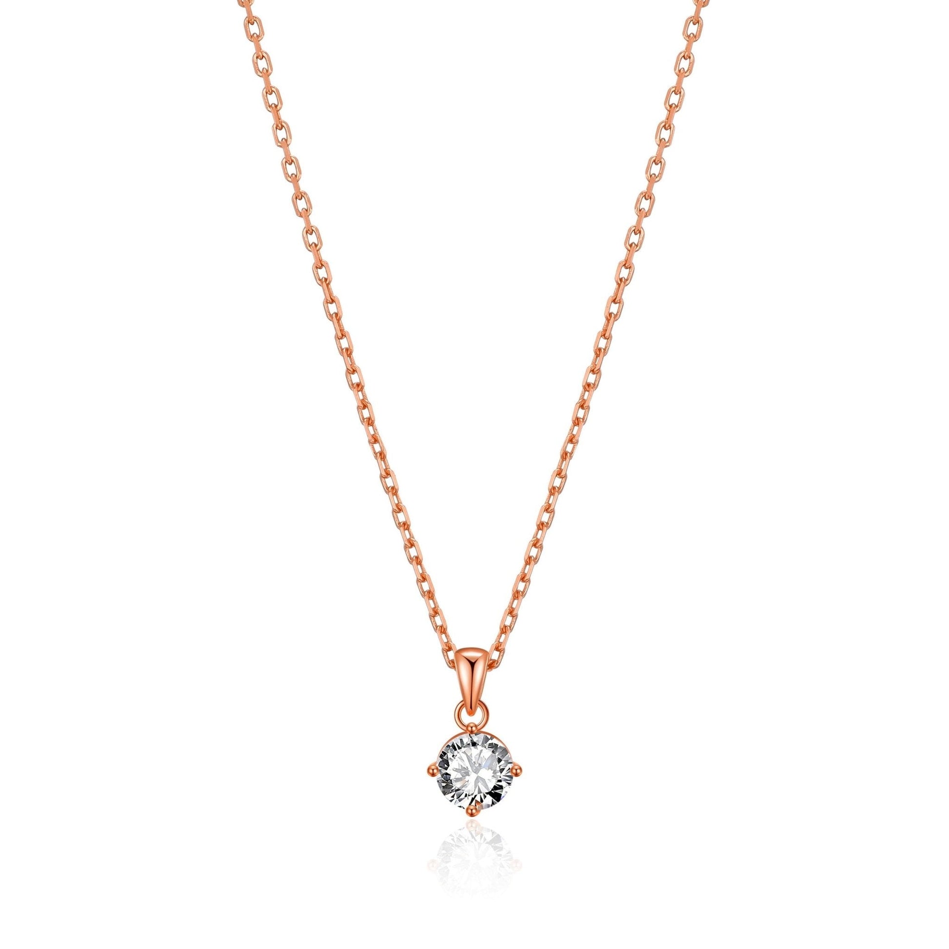 Rose Gold Plated Solitaire Necklace Created with Zircondia® Crystals