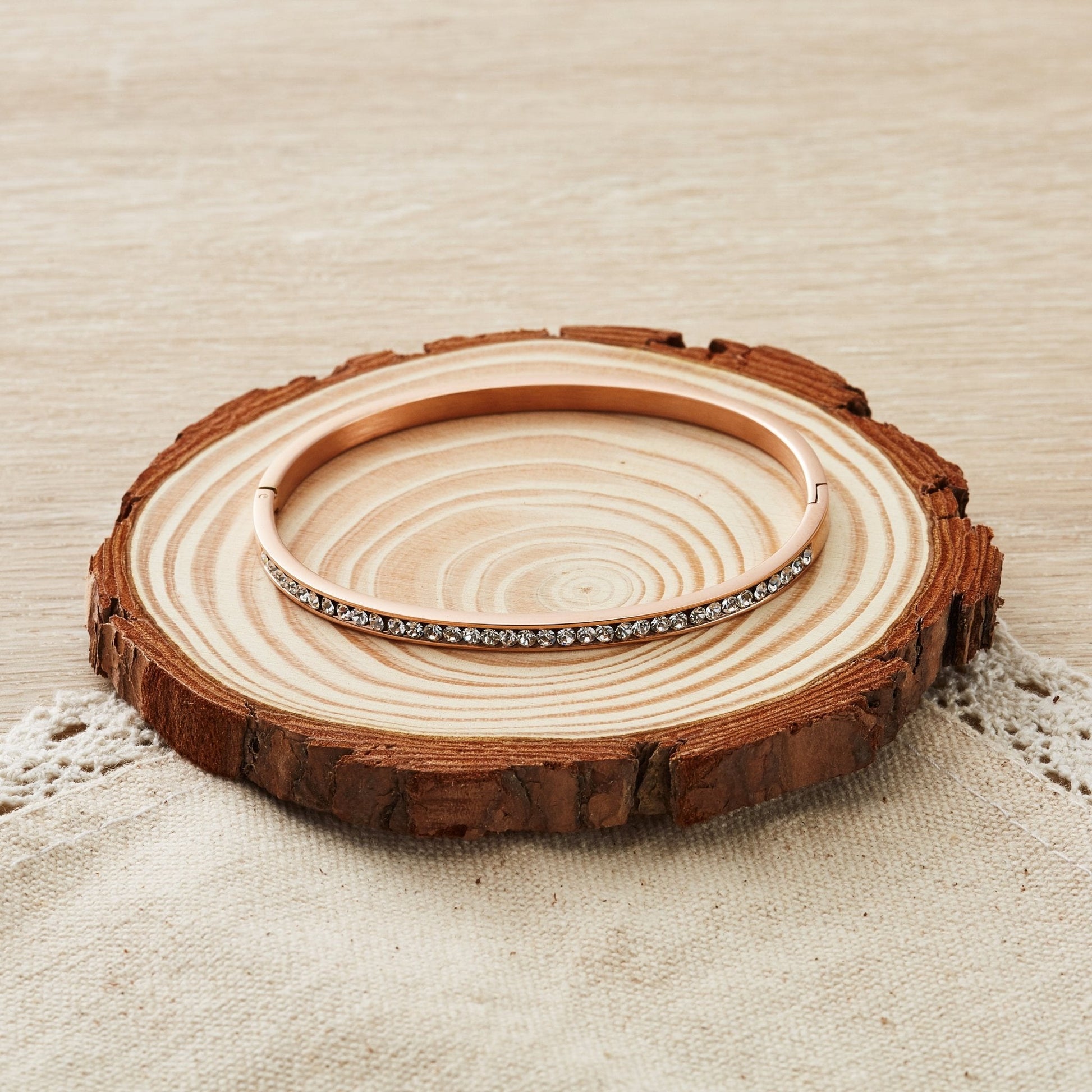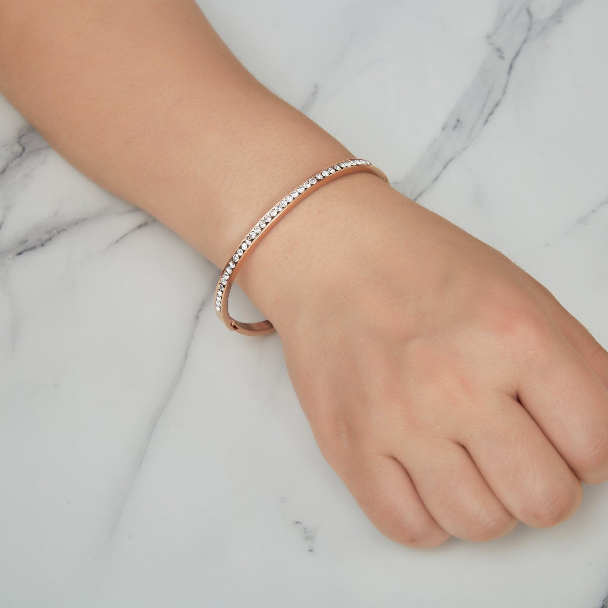 Rose Gold Plated Stainless Steel Channel Set Bangle Created with Zircondia® Crystals (7 Inch)