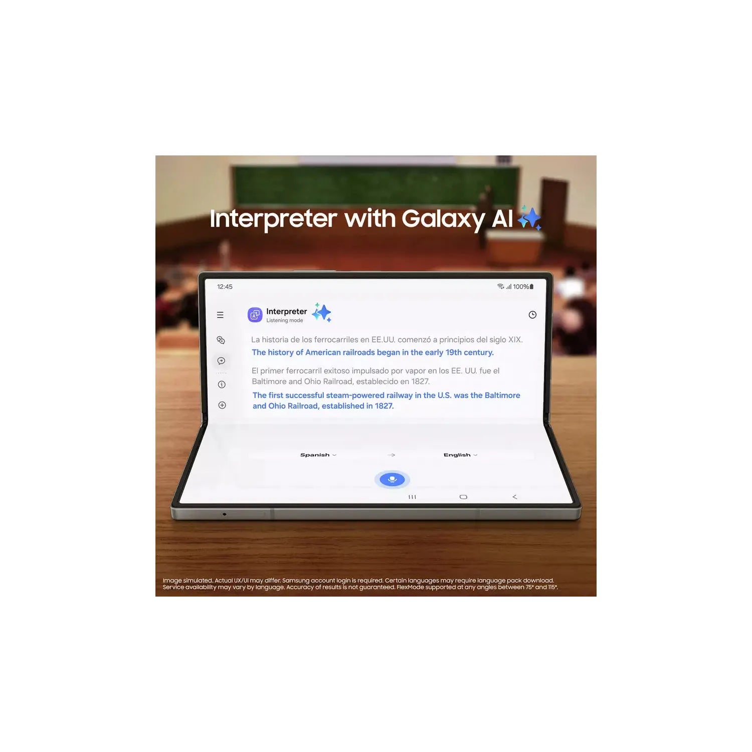 Open Galaxy Z Fold6 and unleash more possibilities, with Galaxy AI. Instantly discover more about anything on your screen - without switching apps - thanks to Circle to Search with Google. Note Assist is a real time-saver, neatly formatting your notes and generating easy to skim summaries. Interpreter uses Z Fold6's Dual Screen Mode to make bilingual conversations a breeze.