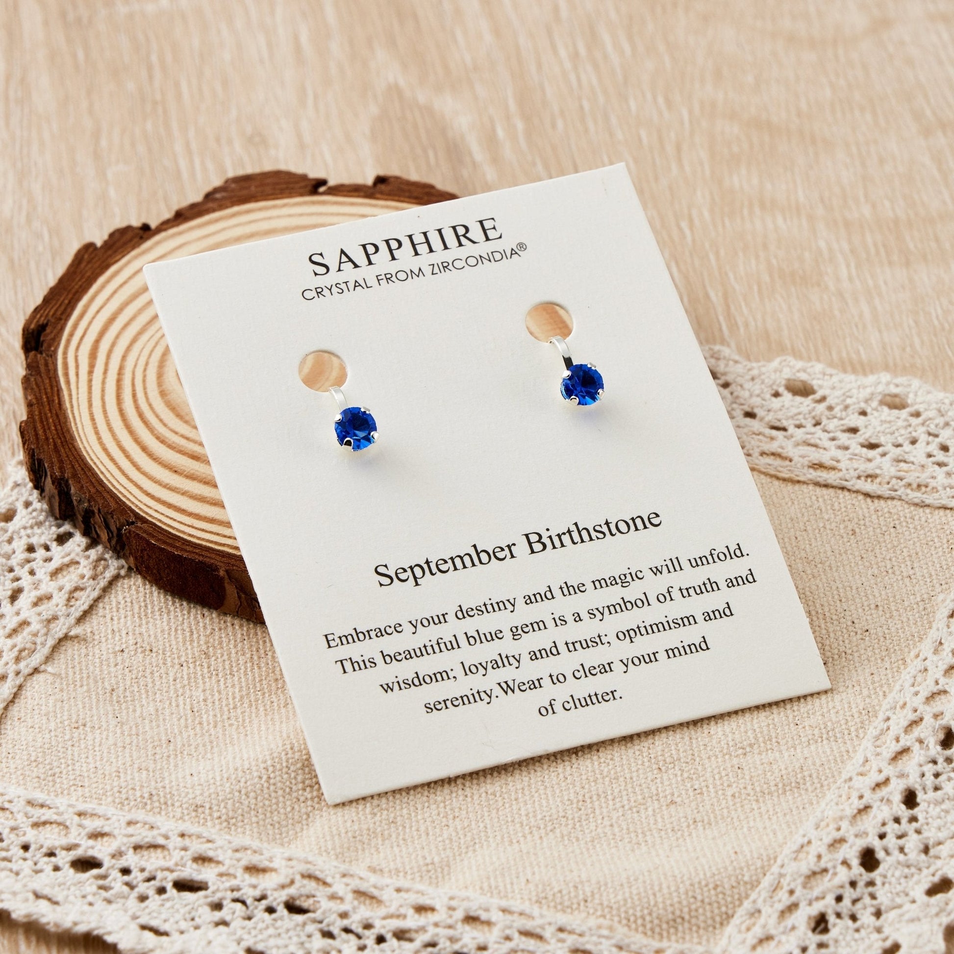 September (Sapphire) Birthstone Clip On Earrings Created with Zircondia® Crystals