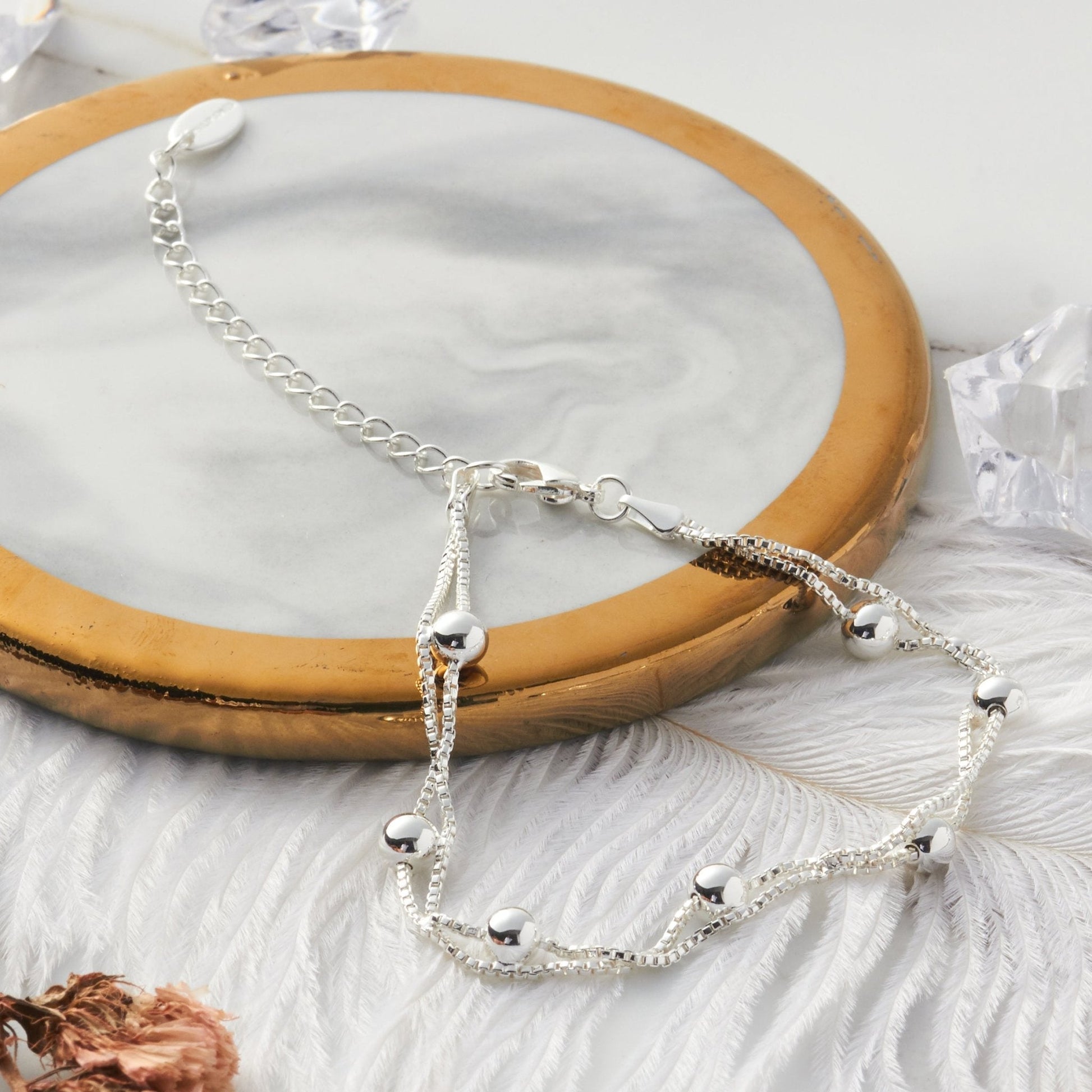 Add a touch of class to your outfit with this elegant silver plated ball bracelet from Philip Jones. Crafted from a brass alloy, the hypoallergenic design is high polished for a luxurious finish. Featuring an 17.8cm+2.5cm extender snake chain with a lobster claw closure, this bracelet comes in an attractive gift pouch.