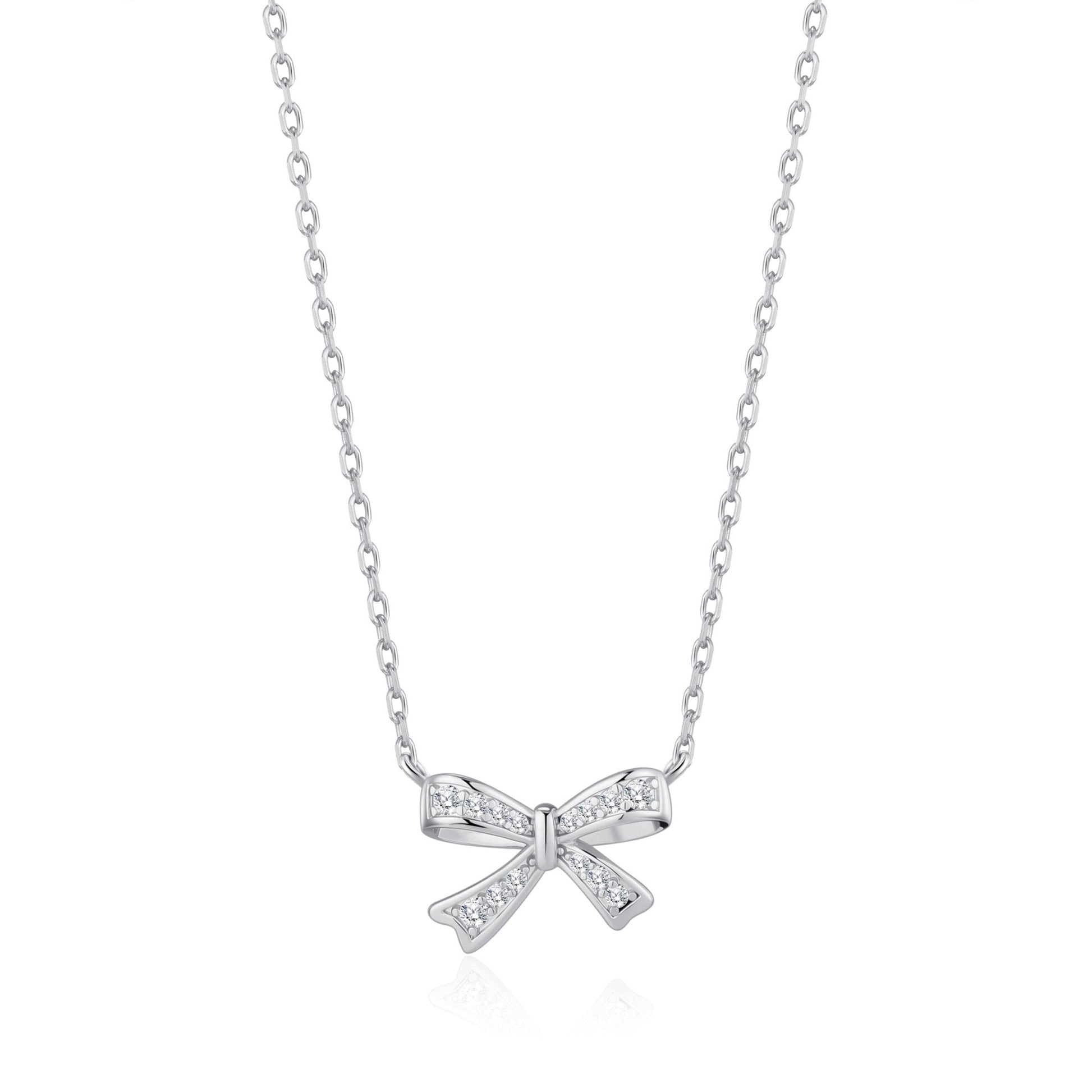 Silver Plated Bow Necklace Created with Zircondia® Crystals