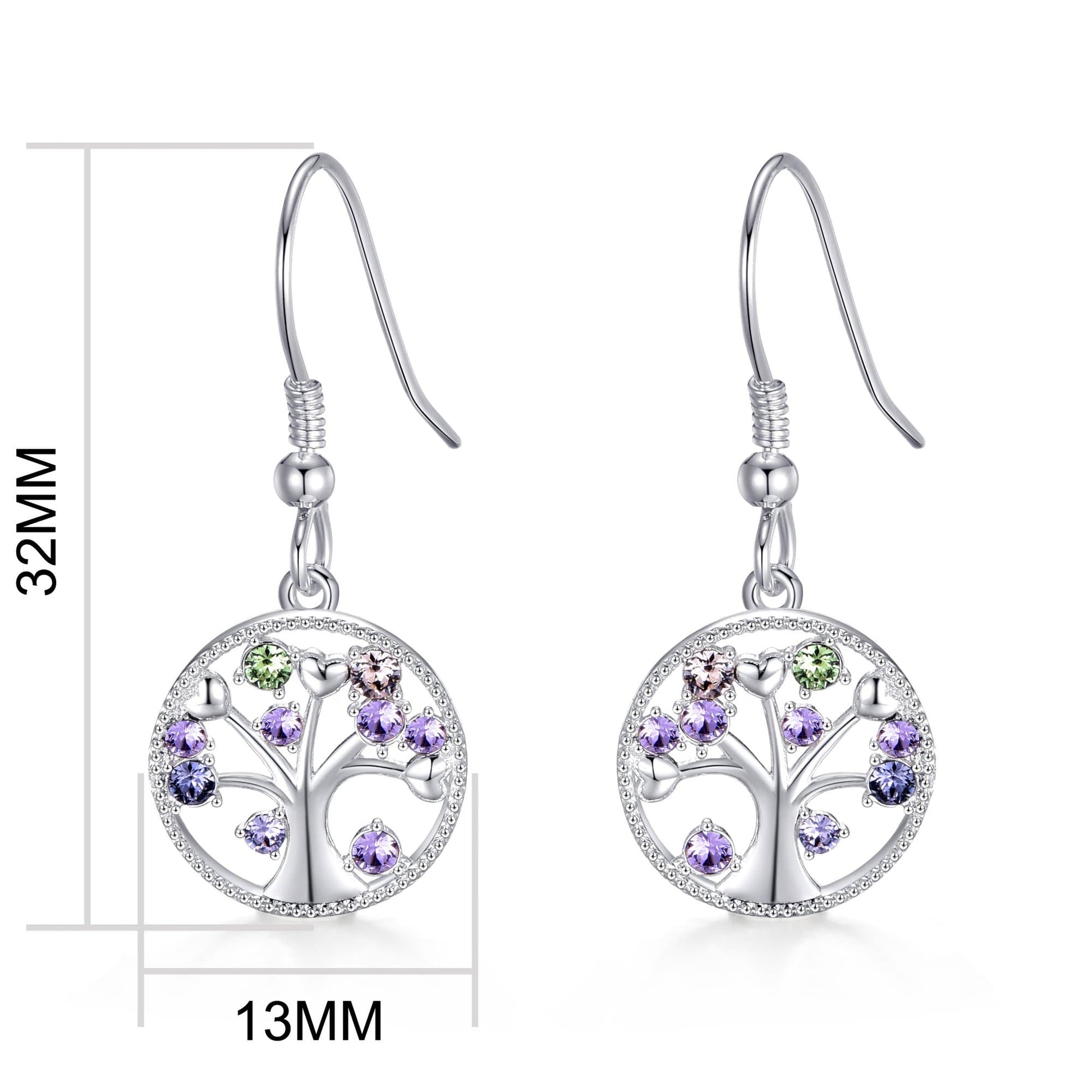 Silver Plated Chakra Tree of Life Drop Earrings Created with Crystals from Zircondia®