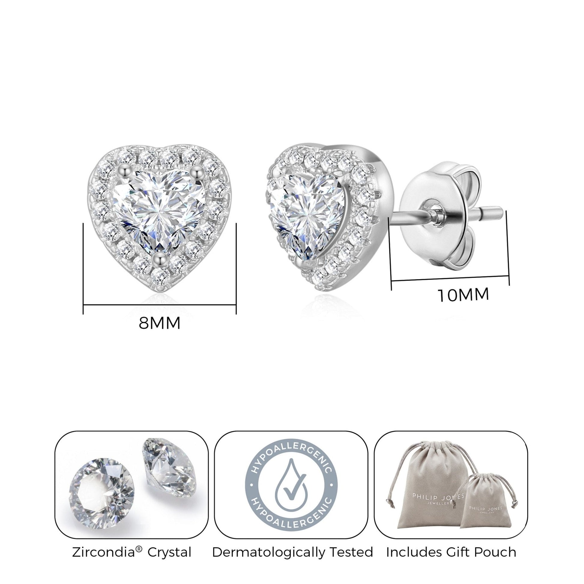 Silver Plated Heart Halo Earrings Created with Zircondia® Crystals
