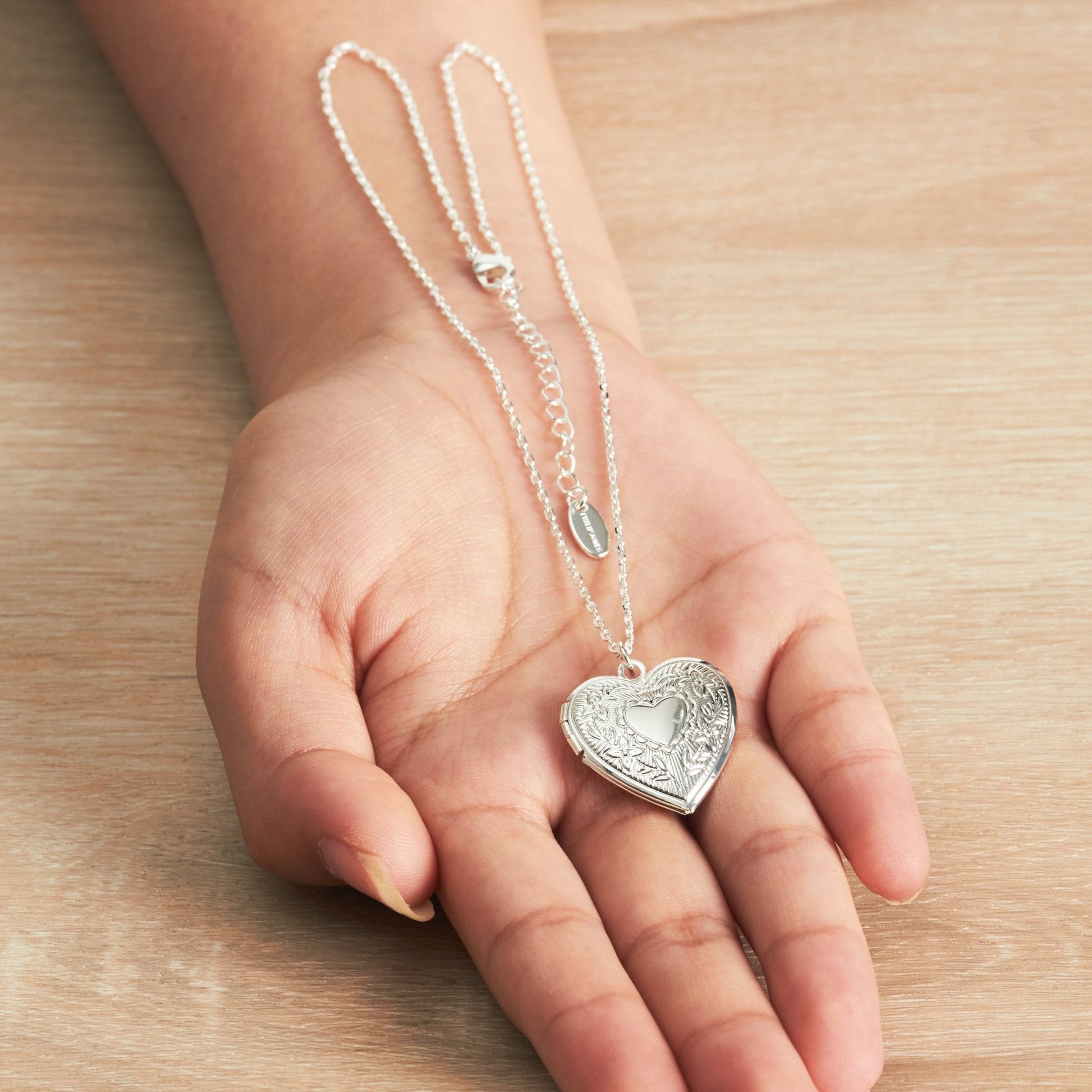 Fall in love with this romantic Silver Plated Heart Locket. Crafted with a brass alloy, its hypoallergenic material and high polished finish make this locket a perfect choice. Suspended on a 50cm + 5cm extender chain, this 23mm by 23mm heart shaped locket makes the perfect gift. Present in a beautiful 5cm x 7cm gift pouch.