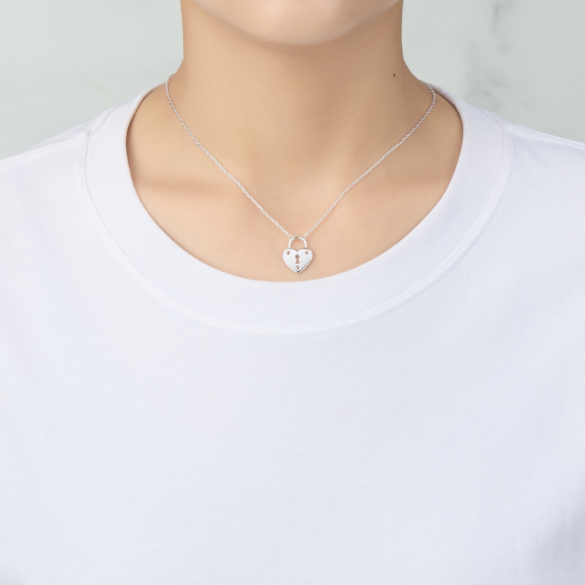 Silver Plated Heart Padlock Necklace Created with Zircondia® Crystals