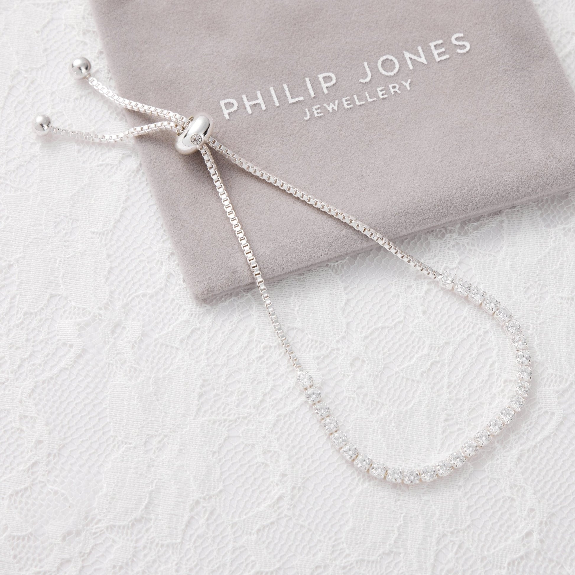 This stunning silver-plated tennis bracelet, crafted with 28 clear Zircondia® crystals, is the perfect wedding accessory for brides, bridesmaids, and bridal celebrations. Hypoallergenic and lightweight, it offers adjustable comfort from 12cm to 24cm with a convenient slider closure. Its elegant design complements any bridal look, making it an ideal gift to celebrate your special day. Presented in a gift pouch with a heartfelt quote card, this bracelet beautifully expresses the sentiment, "I couldn't say I do without you."