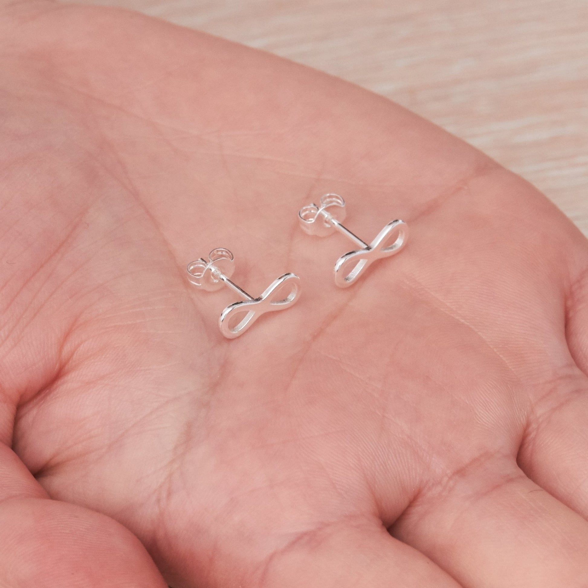 Experience timeless elegance with our Silver Plated Infinity Stud Earrings from Philip Jones. The high polished finish adds a touch of shine to any outfit, while the hypoallergenic material ensures comfort for even the most sensitive ears. These lightweight earrings come in a beautiful gift pouch, making them the perfect present for yourself or a loved one.