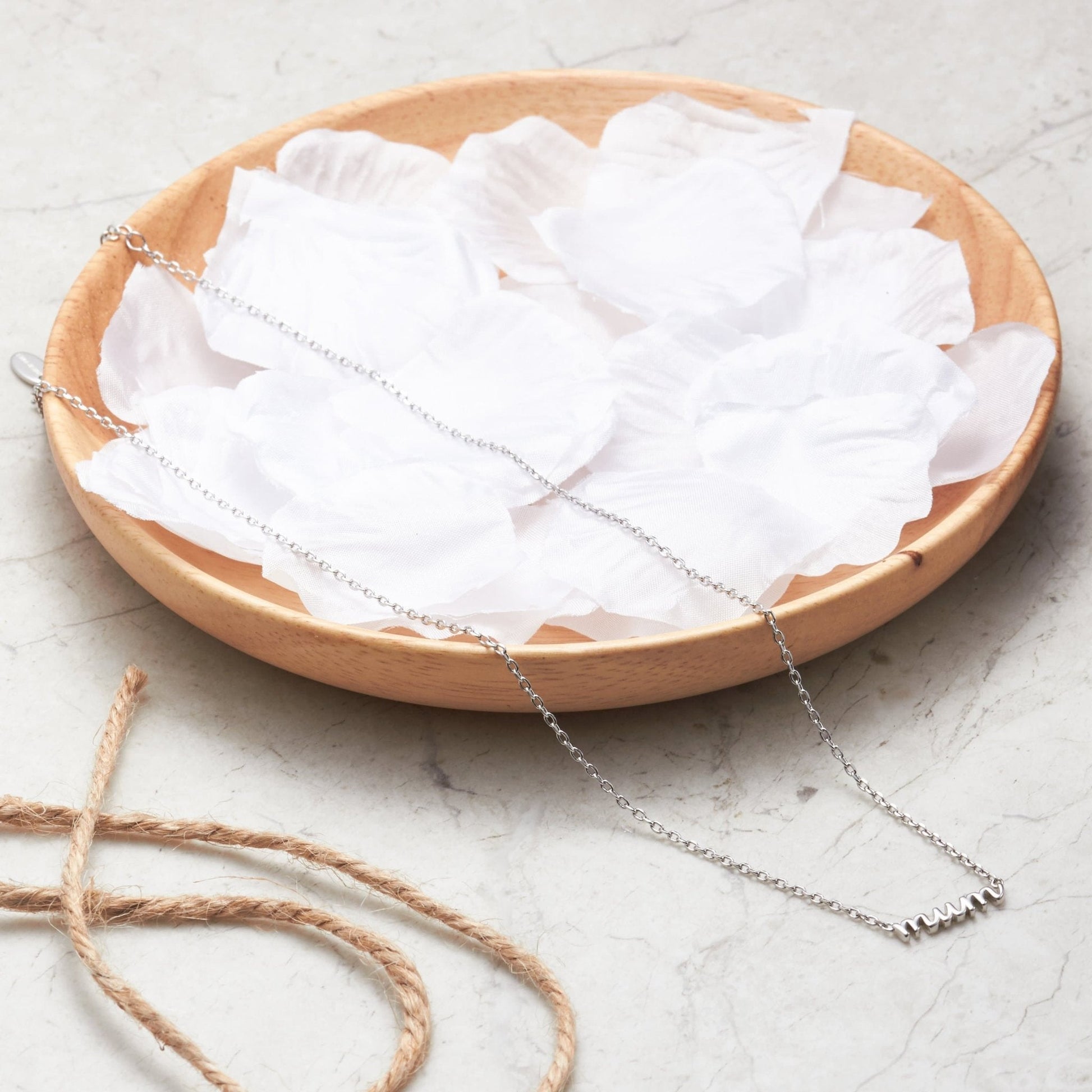 This elegant Silver Plated Mum Necklace features a high polished finish that catches the light beautifully. Crafted from durable brass alloy and hypoallergenic materials, it offers comfort for sensitive skin. The delicate pendant measures 4mm by 18mm, hanging on a 43cm cable chain with a 5cm extender for the perfect fit. Securely fastened with a lobster claw clasp, this lightweight 2.7g necklace is a thoughtful gift, presented in a stylish pouch ready to delight any mum.