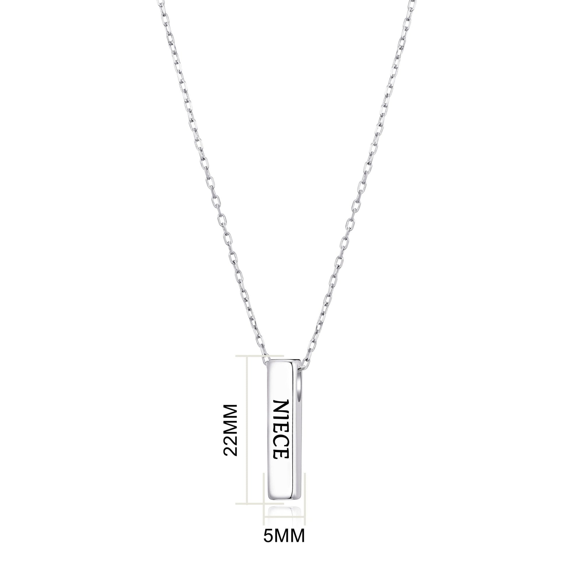 Show your niece how much she means to you with the Silver Plated Niece Bar Necklace from Philip Jones. With a high polished finish and hypoallergenic silver plating, this necklace is both stylish and safe for sensitive skin. The delicate pendant features a length of 22mm, and the chain is adjustable for a perfect fit. Comes in a charming gift pouch.