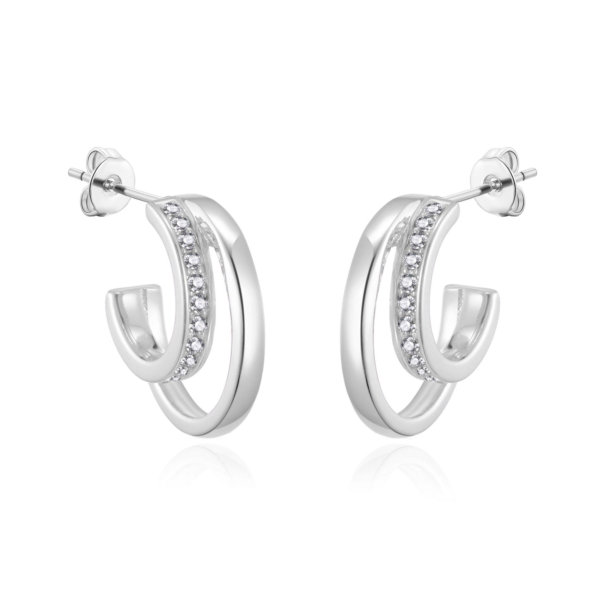 Silver Plated Open Double Hoop Earrings Created With Zircondia® Crystals