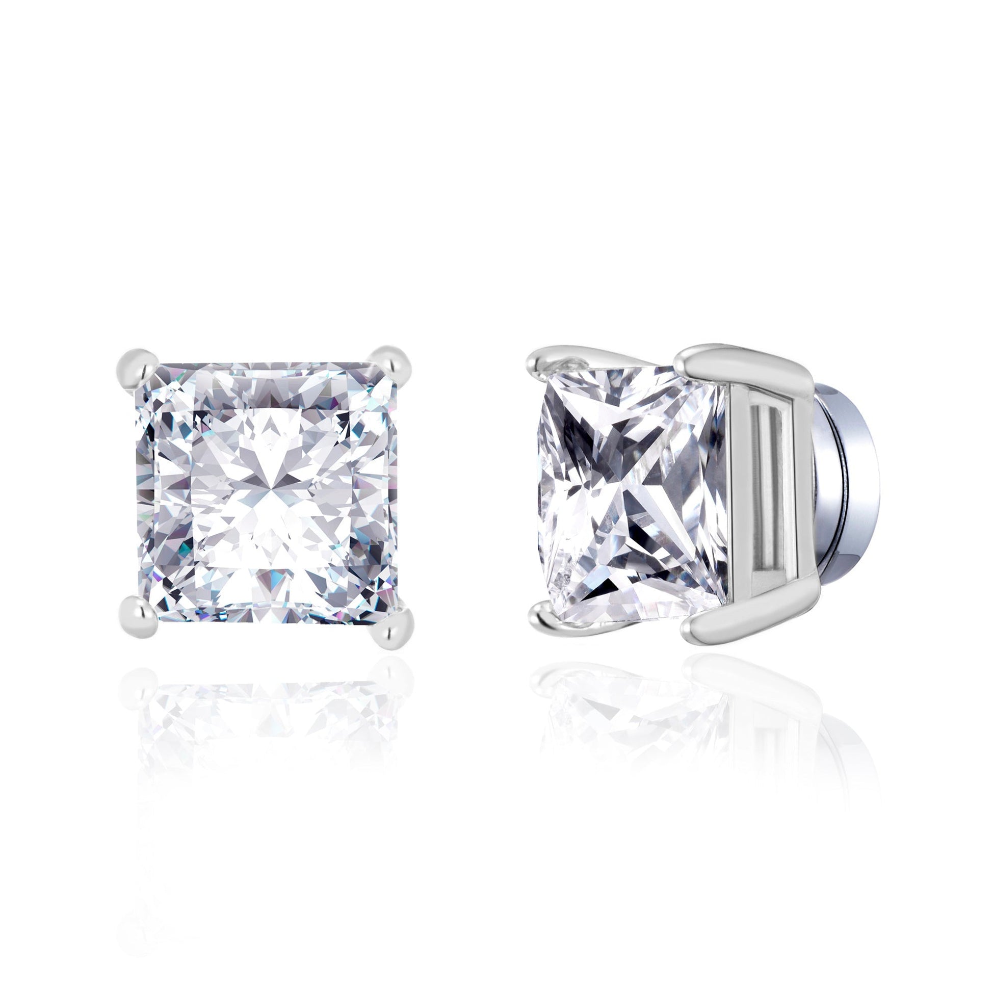 Fall in love with these gorgeous magnetic clip on earrings! Silver plated and created with Zircondia® crystals, they are hypoallergenic for your comfort. Each pair is unique: 6mm square in size and glistening in clear colour. Perfect for gifting or treating yourself with beauty!