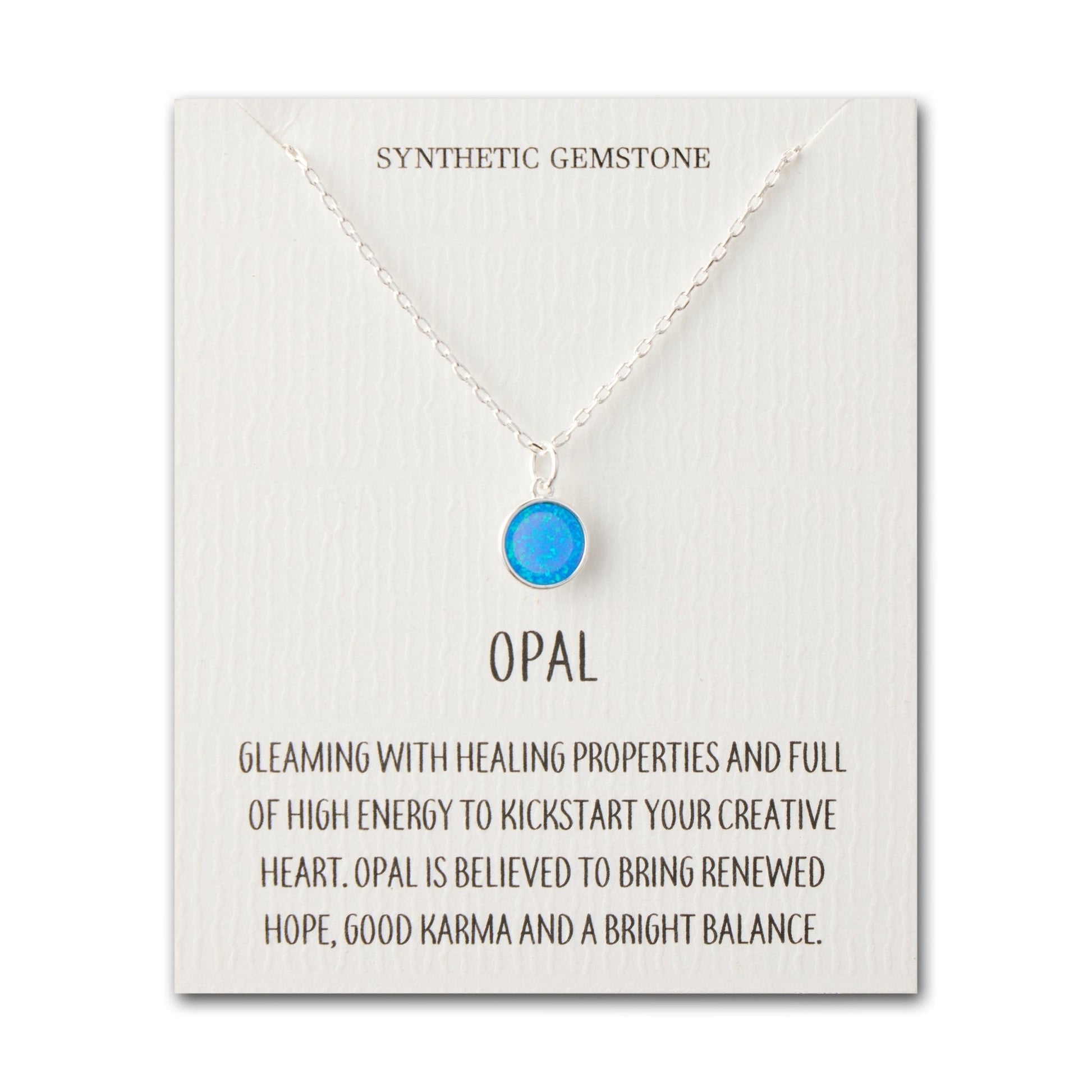 Silver Plated Synthetic Blue Opal Necklace with Quote Card