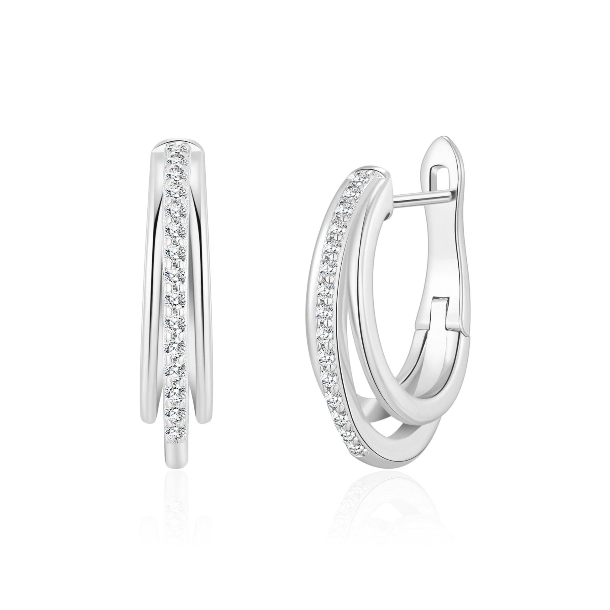 Silver Plated Triple Illusion Hoop Earrings Created with Zircondia® Crystals