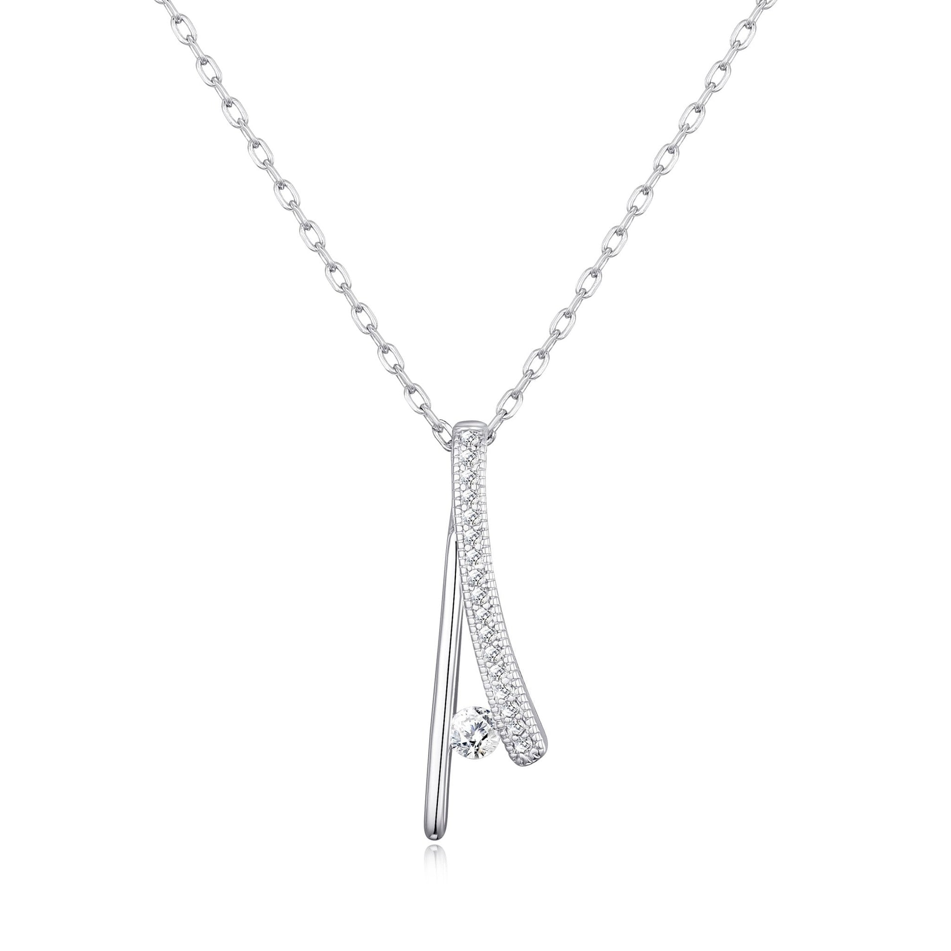 Silver Plated Wishbone Necklace Created with Zircondia® Crystals