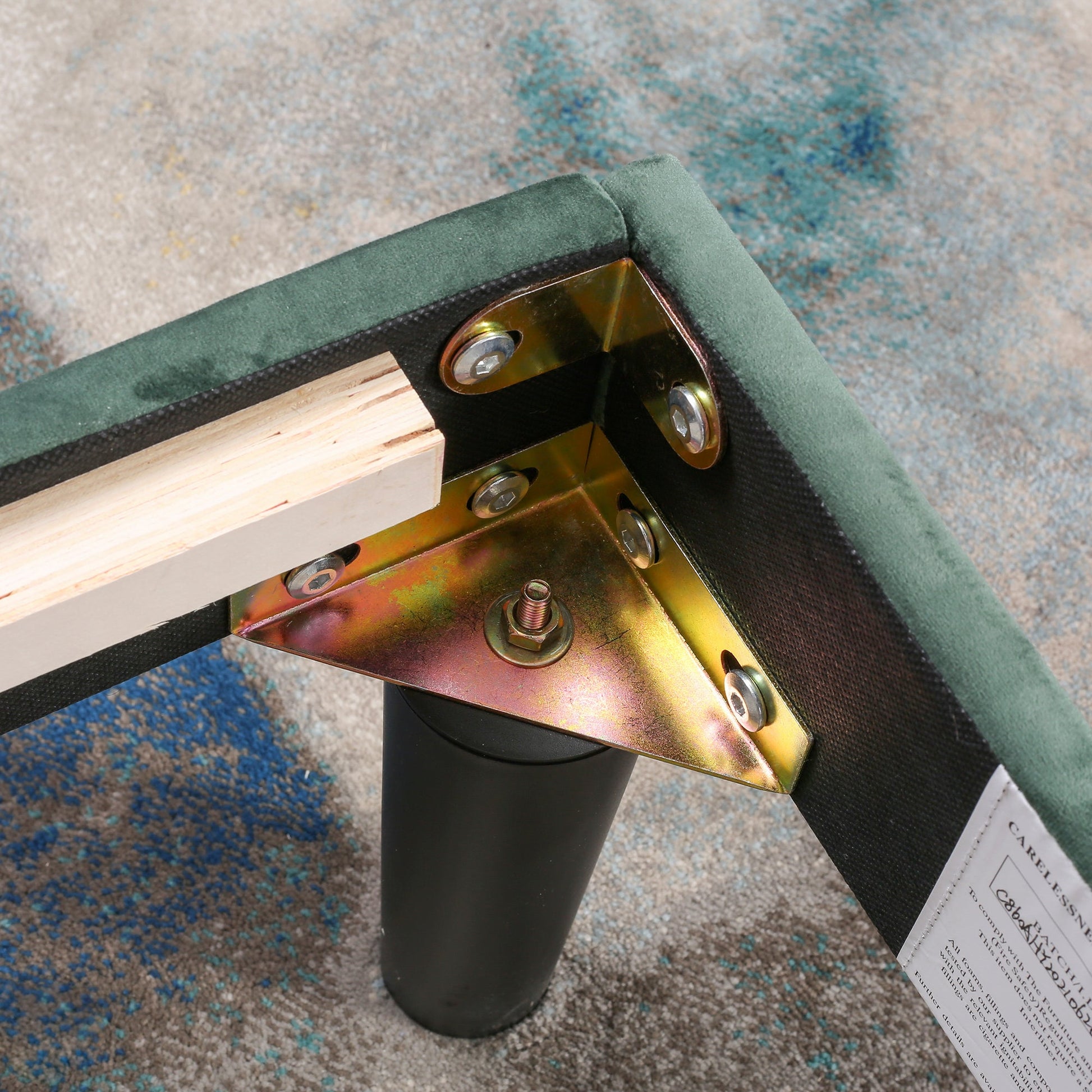 Single Bed Velvet Dark Green Upholstered Bed with Winged Headboard and Wood Slat Supports