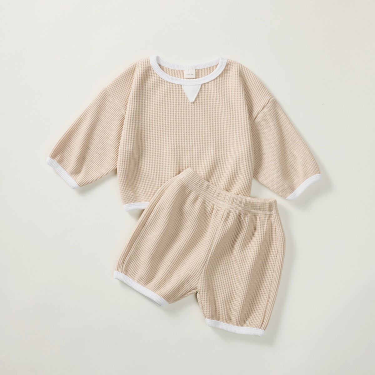 Product information: Style: All-matching Suit type: blouse and pants Number of suite: two-piece set Suitable season: spring, autumn Sleeve length: long sleeve Pants length: Shorts Fabric craft: soft treatment Thickness: thin Pattern: solid color Element: Suit Main fabric: Cotton Color: apricot, silver gray