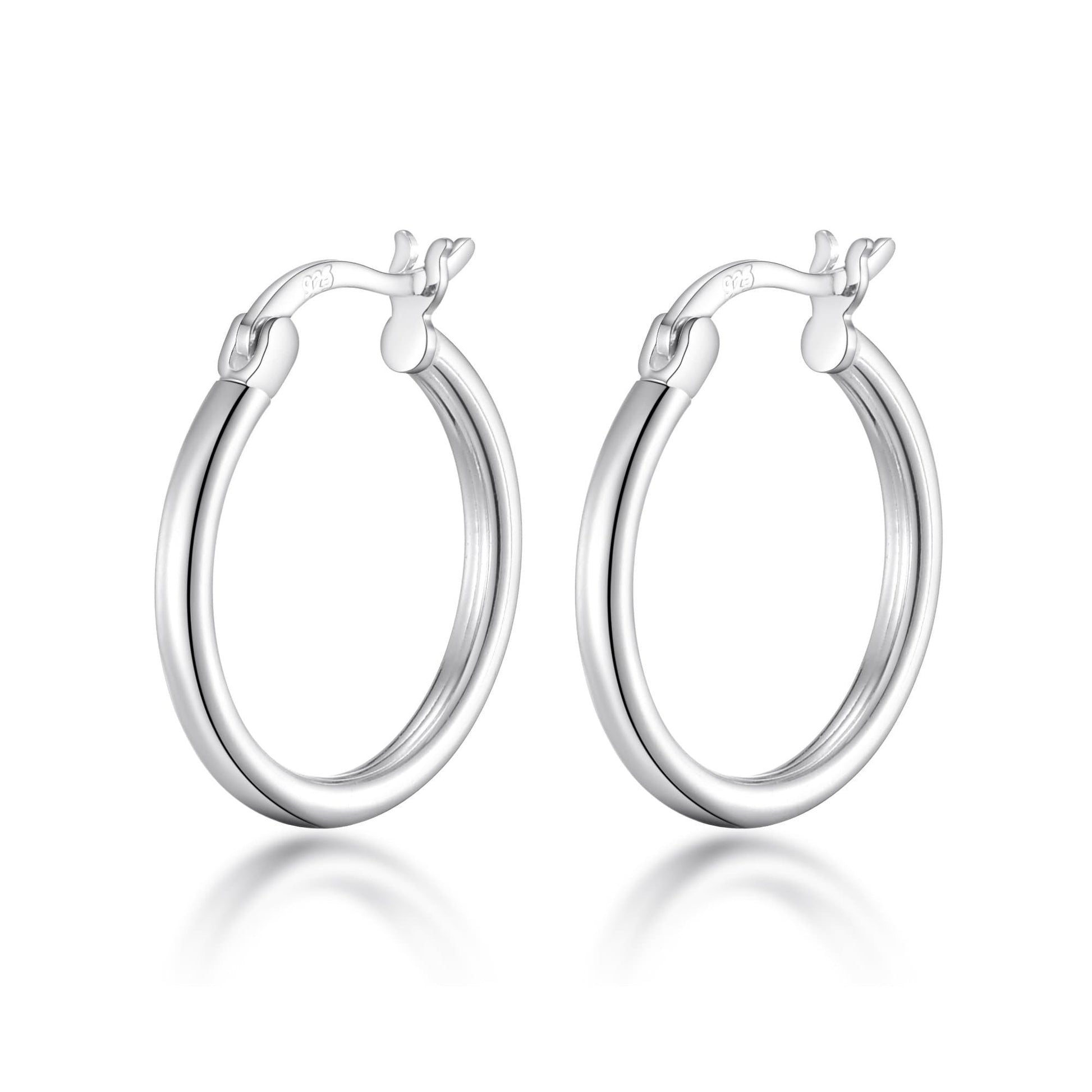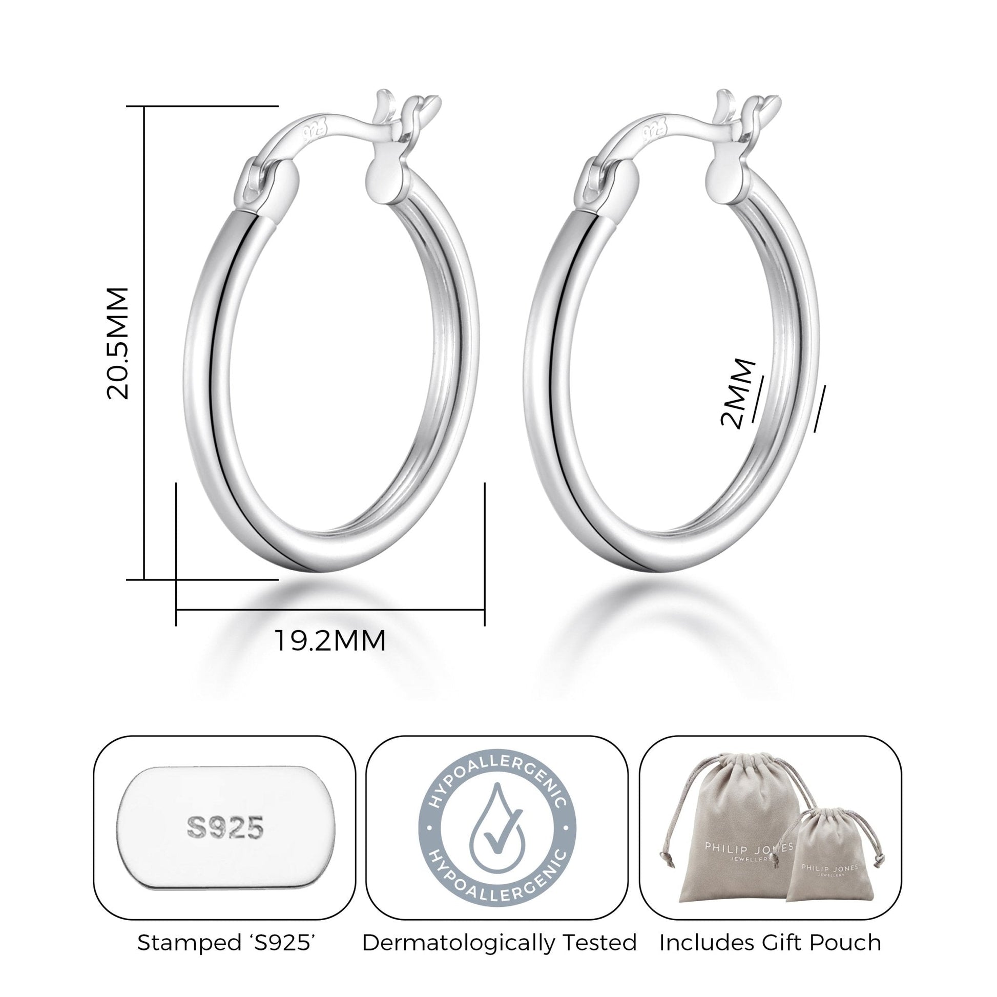 These stunning Sterling Silver 20mm Hoop Earrings are stamped with 925 to guarantee top-quality craftsmanship. Hypoallergenic and lightweight, they showcase a captivating perfect circle design with a subtle 2mm thickness and secure lever back closure. Add some timeless elegance to any look and treat yourself or a loved one to this beautiful jewelry.