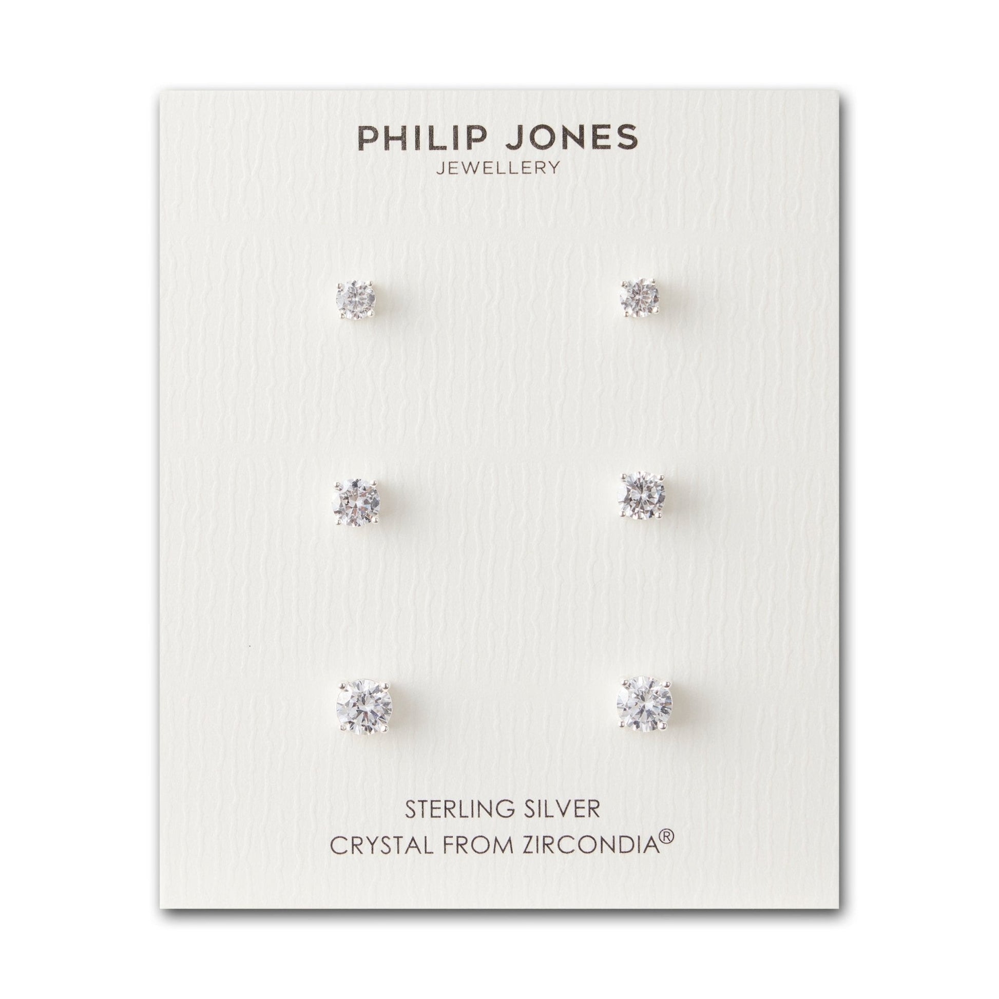 Sterling Silver 3 Pack of 4, 5, and 6mm Earrings Created with Zircondia® Crystals
