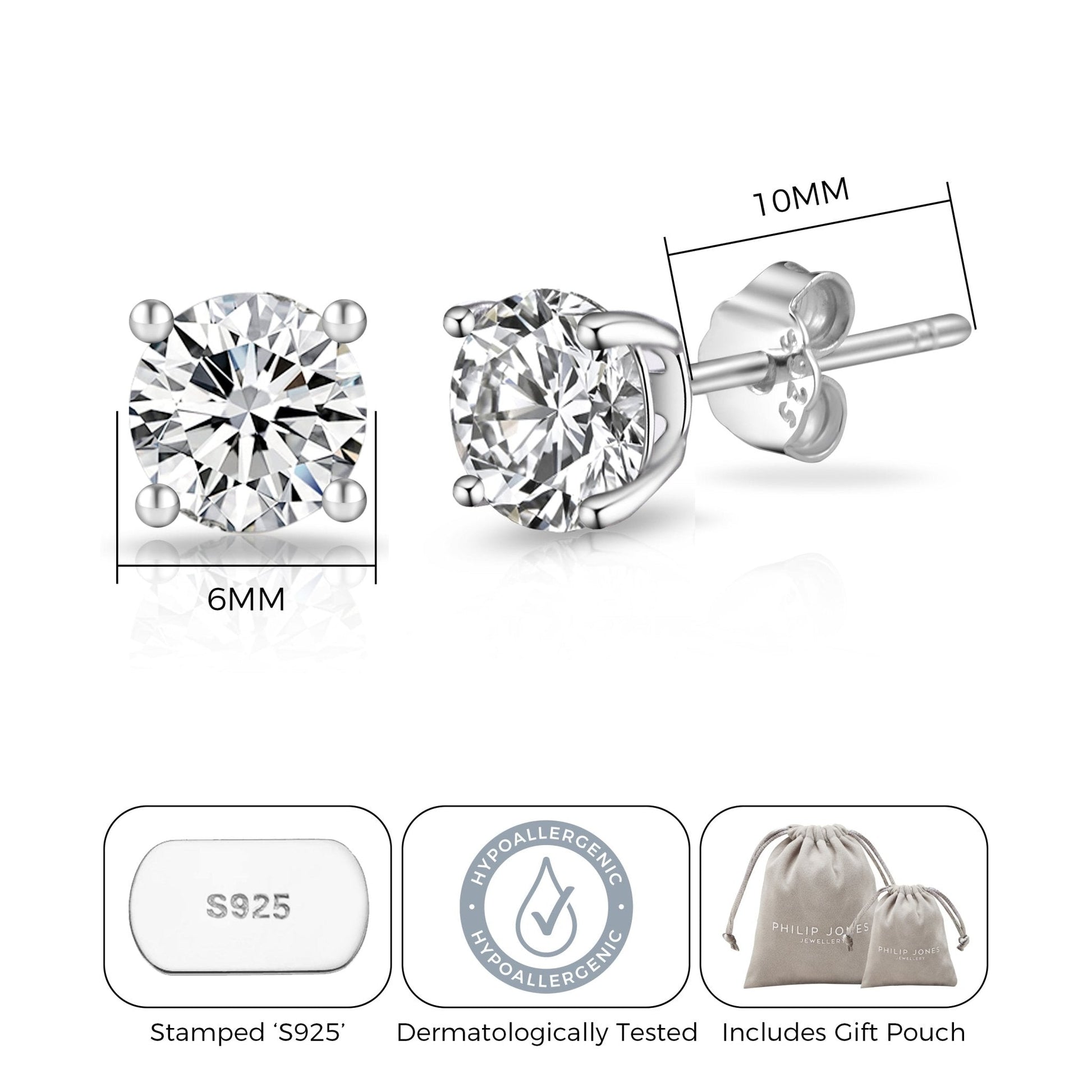Sterling Silver 6mm Round Earrings Created with Zircondia® Crystals