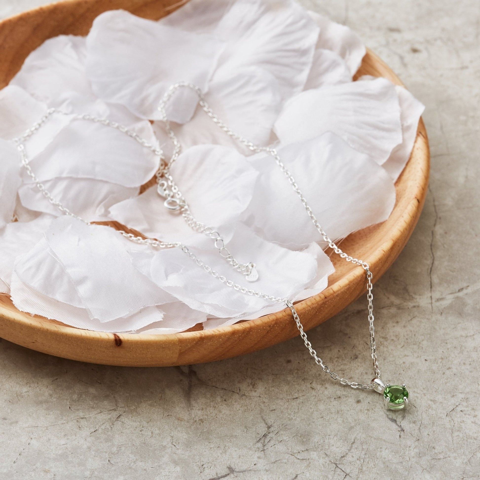 Sterling Silver August (Peridot) Birthstone Necklace Created with Zircondia® Crystals