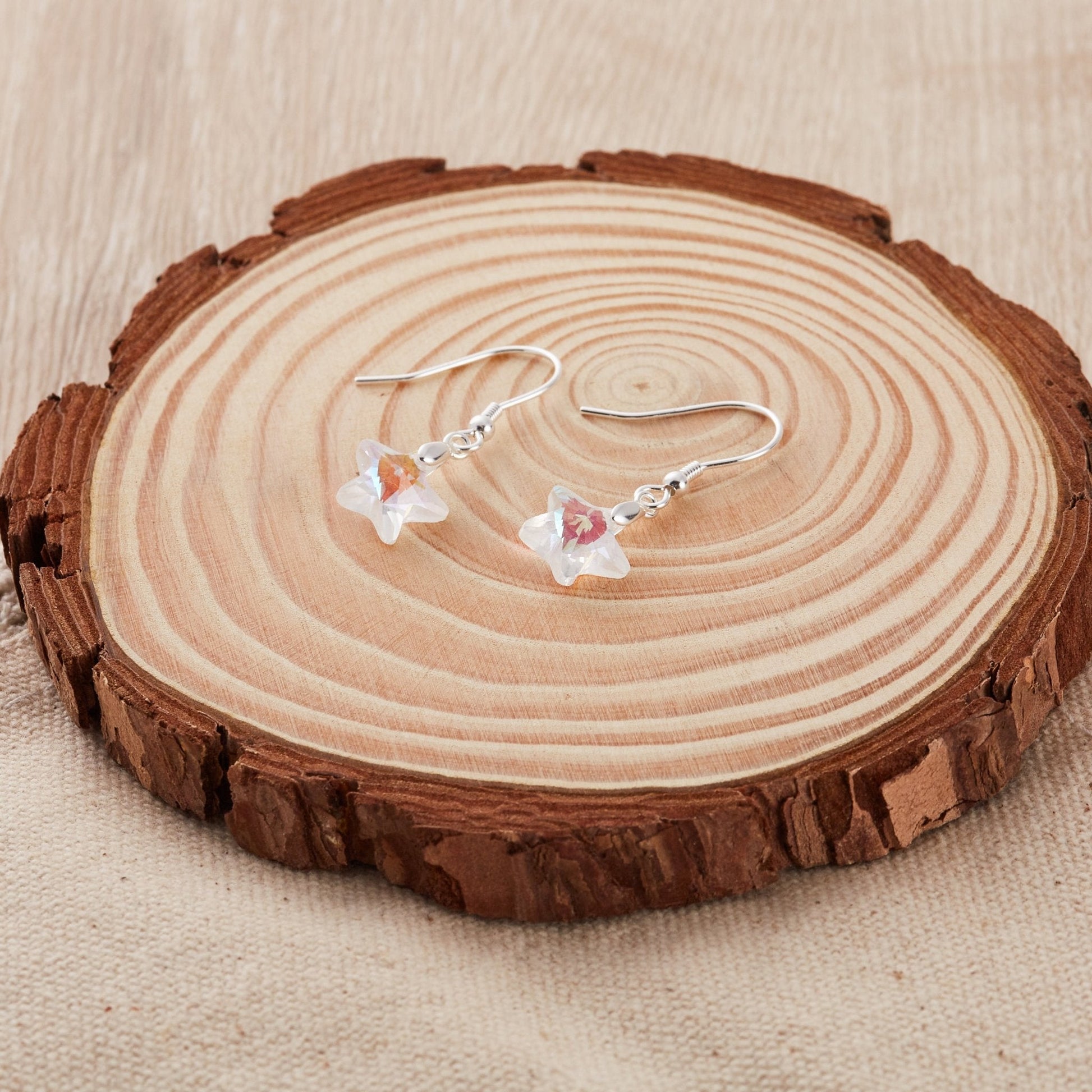 Sterling Silver Aurora Borealis Star Earrings Created with Zircondia® Crystals