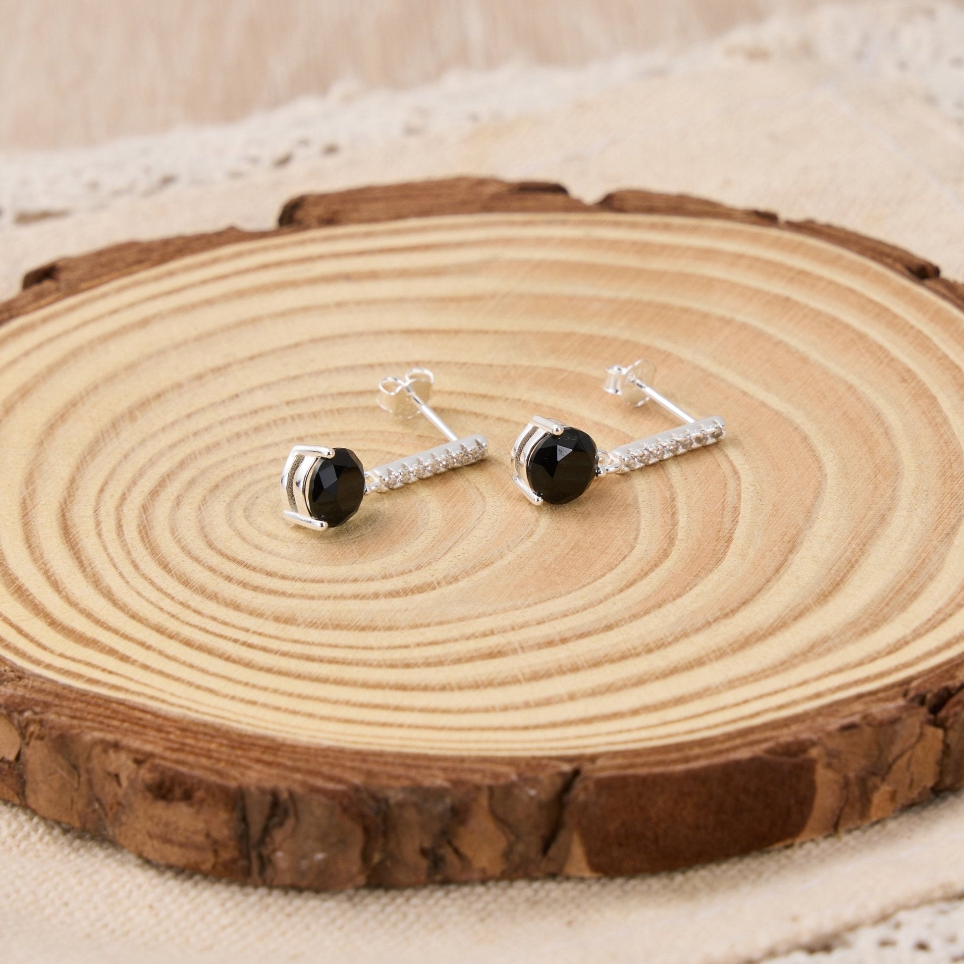 Sterling Silver Black Onyx Gemstone Drop Earrings