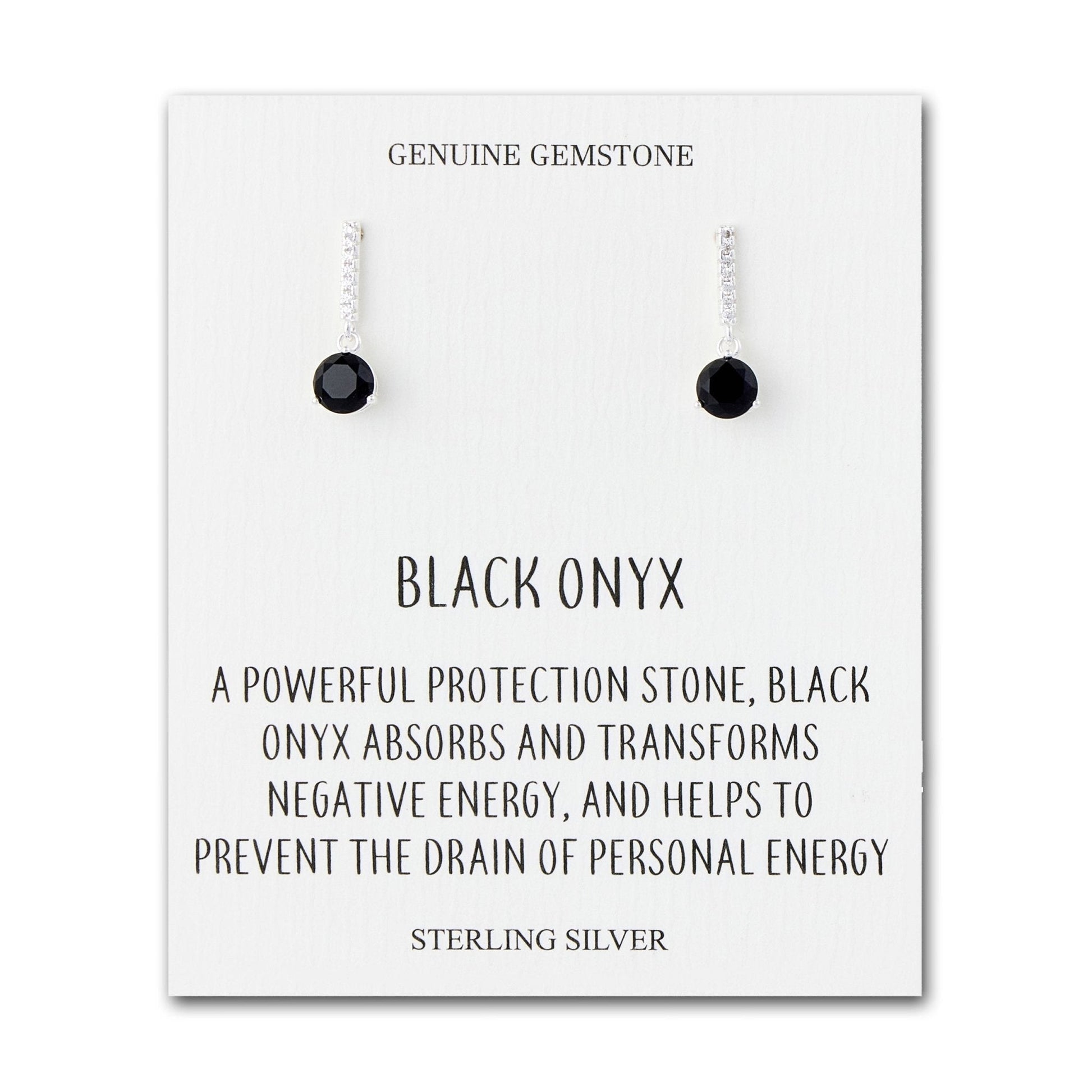 Sterling Silver Black Onyx Gemstone Drop Earrings with Quote Card