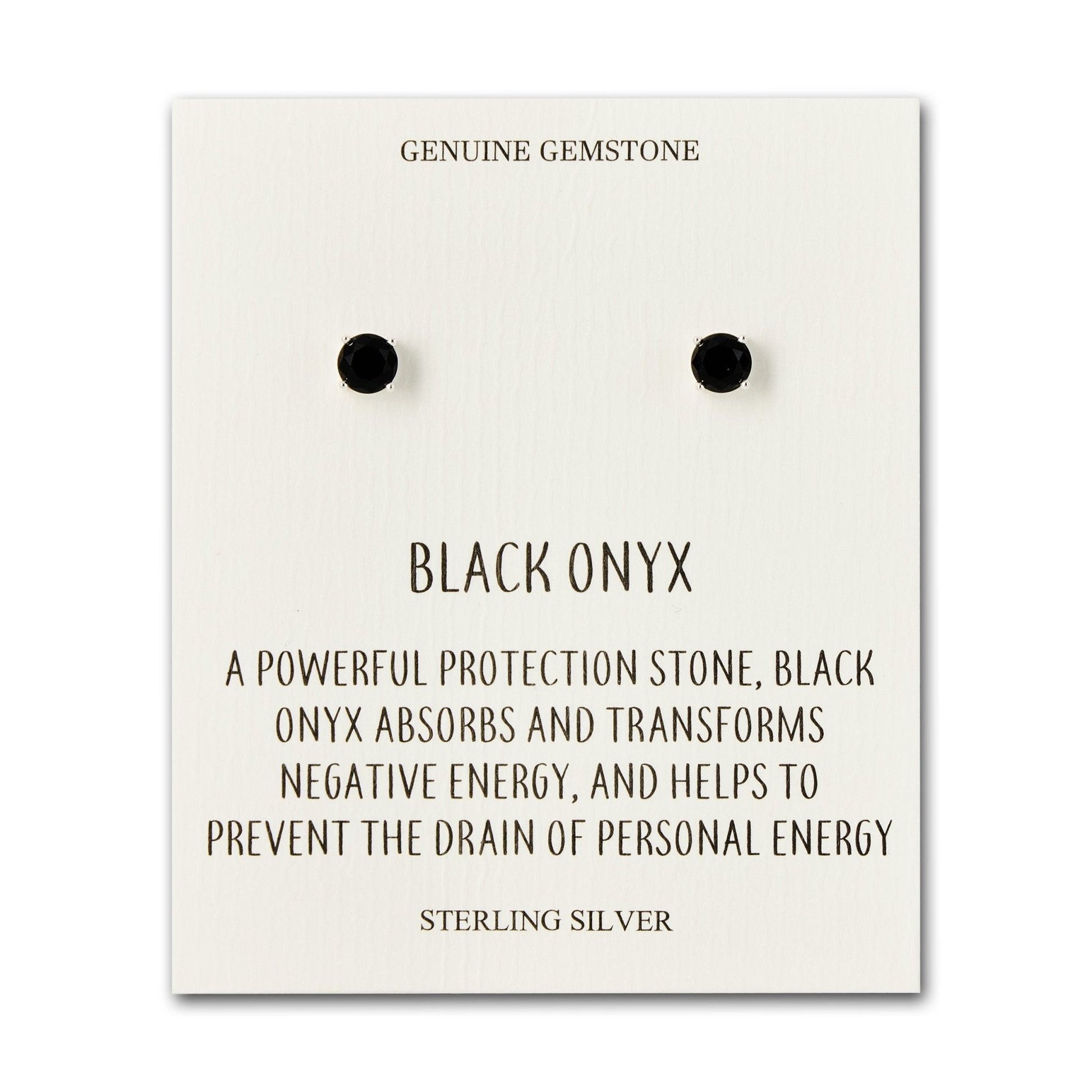 Sterling Silver Black Onyx Gemstone Earrings with Quote Card