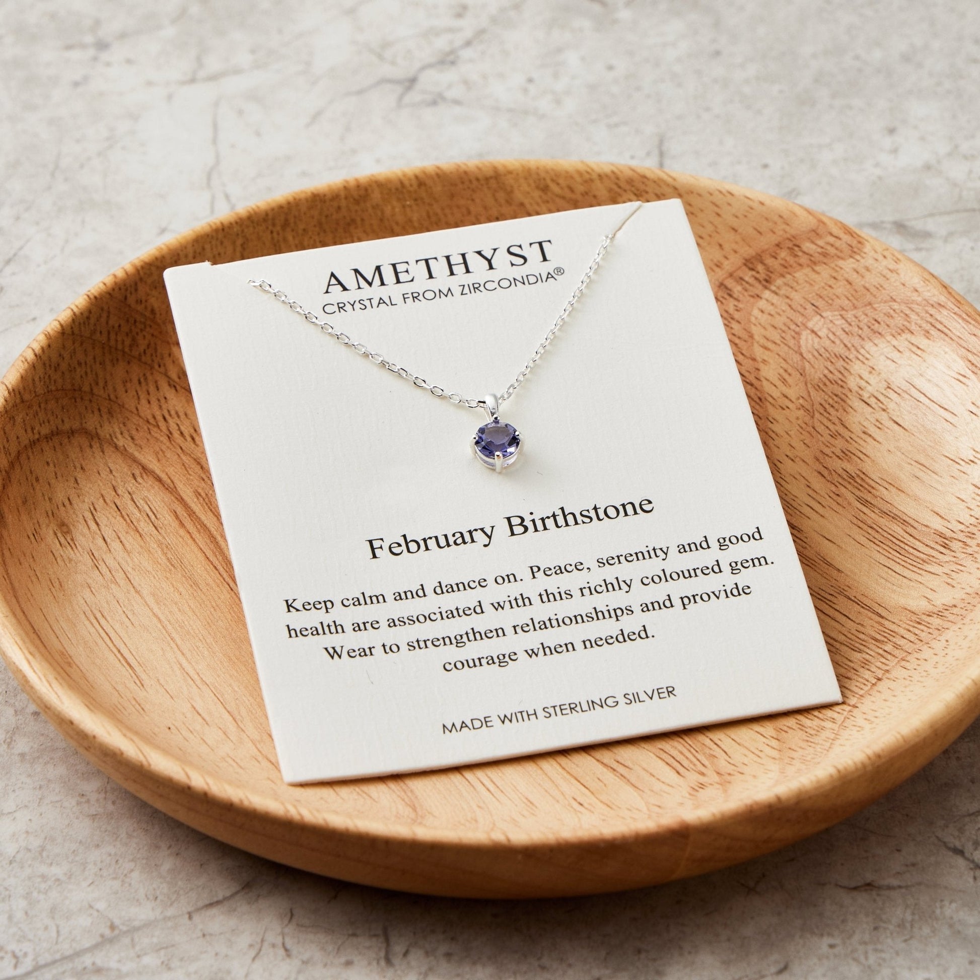 Sterling Silver February (Amethyst) Birthstone Necklace Created with Zircondia® Crystals