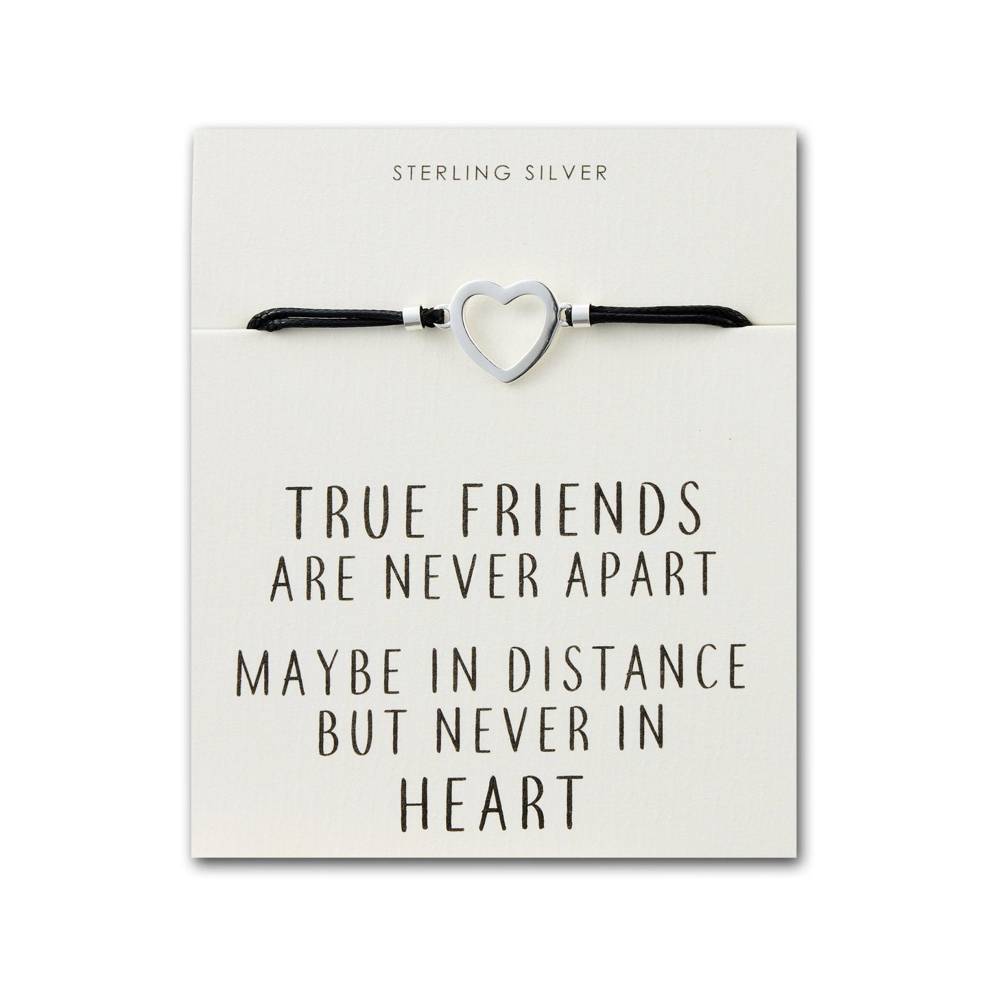 Sterling Silver Friendship Quote Corded Heart Bracelet