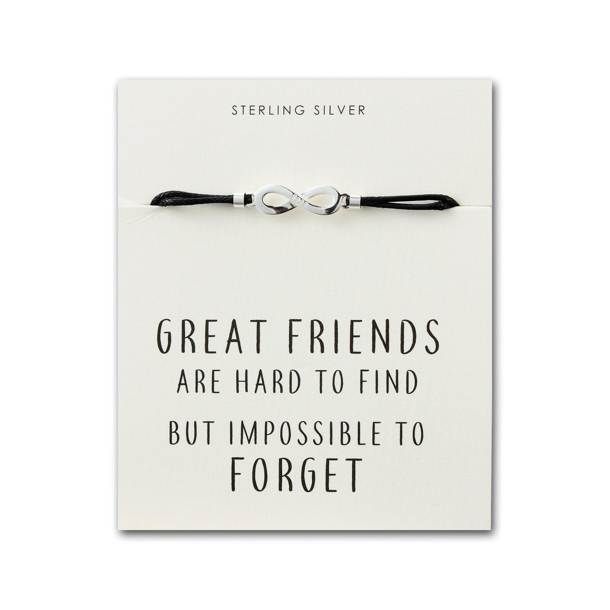 Sterling Silver Friendship Quote Corded Infinity Bracelet