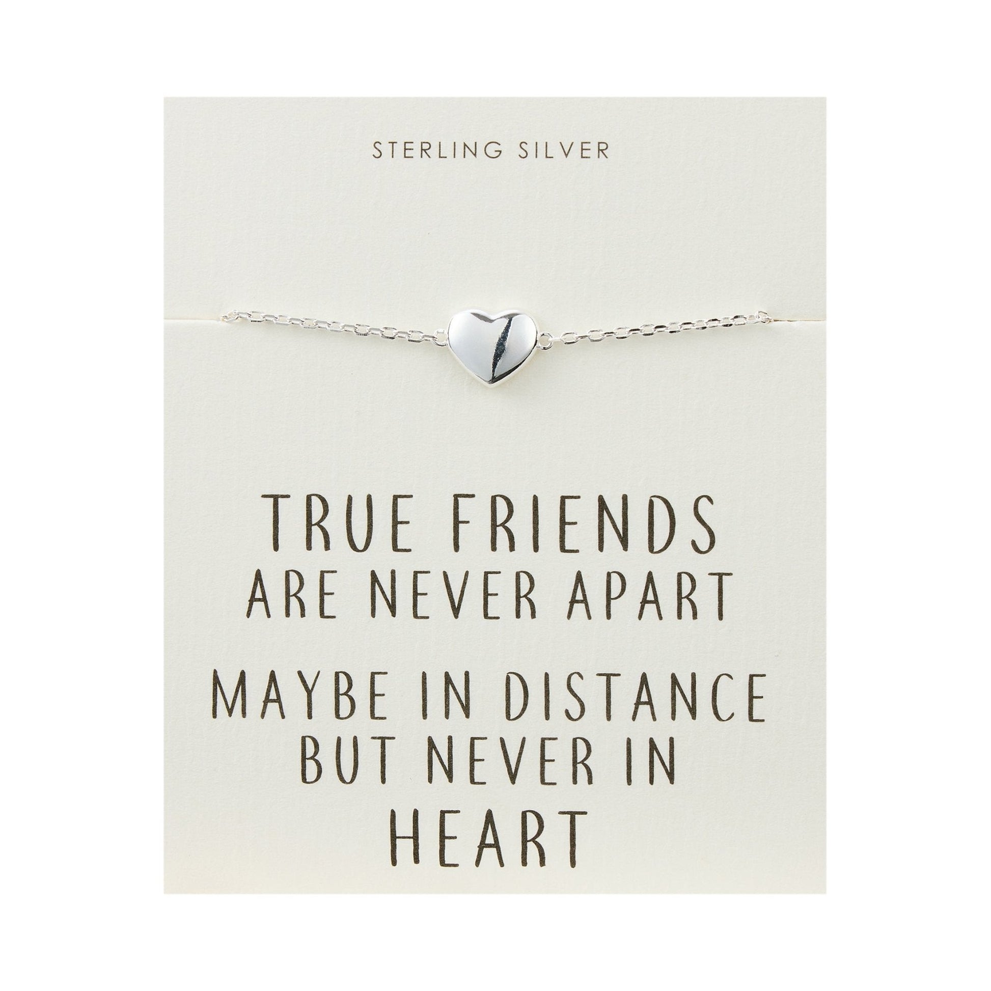 Elevate your friendship with the Sterling Silver Friendship Quote Heart Bracelet from Philip Jones. Made from hypoallergenic stamped 925 Sterling Silver, it sparkles with a chain link bracelet and delicate heart charm. The perfect gift, packaged in a charming gift pouch with inspirational quote card.