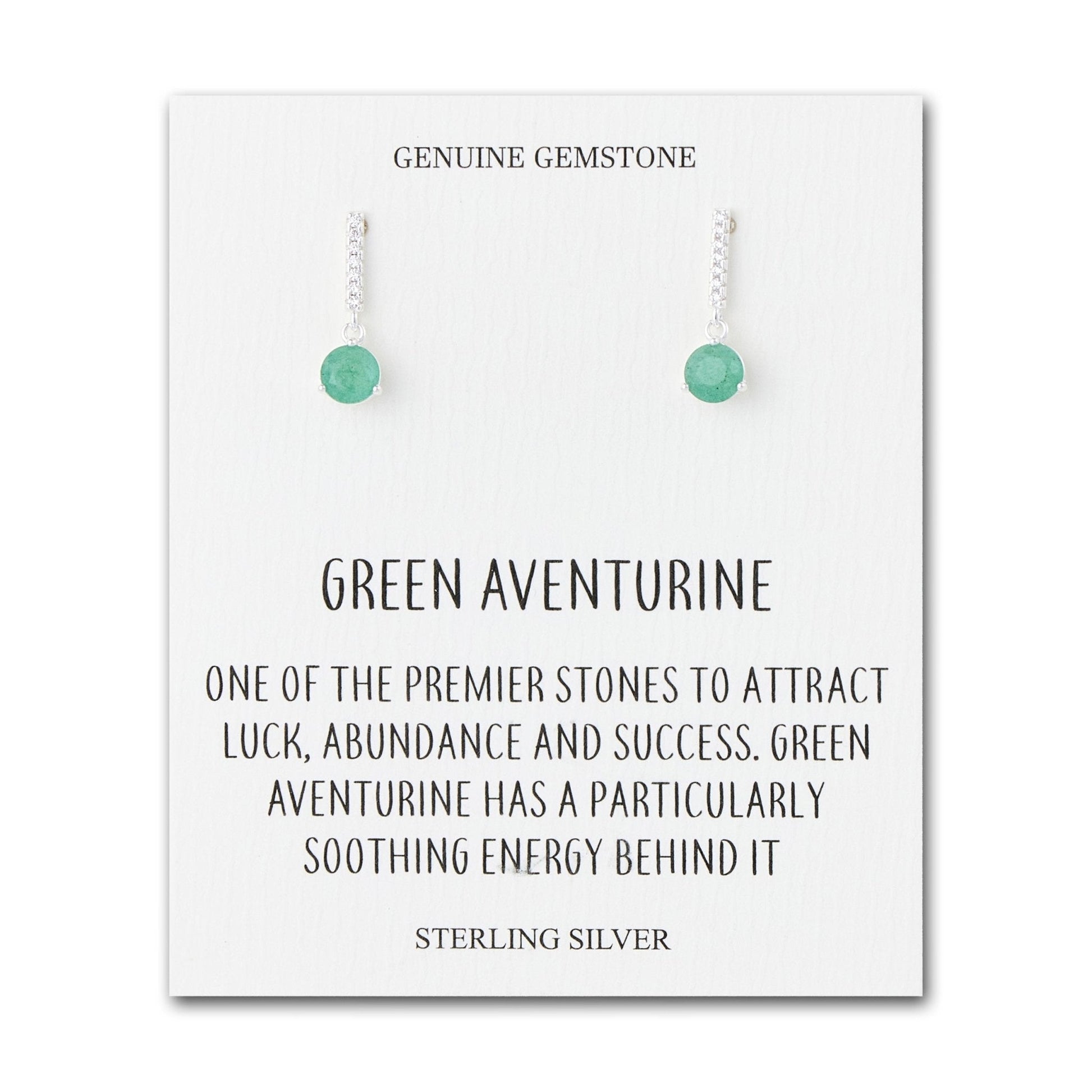 Sterling Silver Green Aventurine Gemstone Drop Earrings with Quote Card