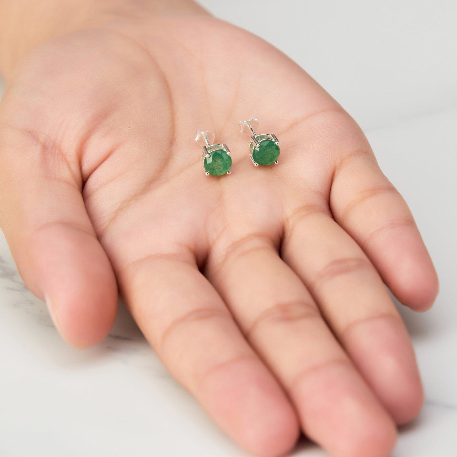 Experience the beauty of genuine gemstones with these Sterling Silver Green Aventurine Earrings. Made with stamped 925 hypoallergenic silver, these stud earrings feature a 6mm round green aventurine stone in a 4 prong setting. Feel confident and stylish with these lightweight earrings that come in a gift pouch with an inspiring quote card. Only 1.10g in weight, these earrings will add a touch of elegance to your look.
