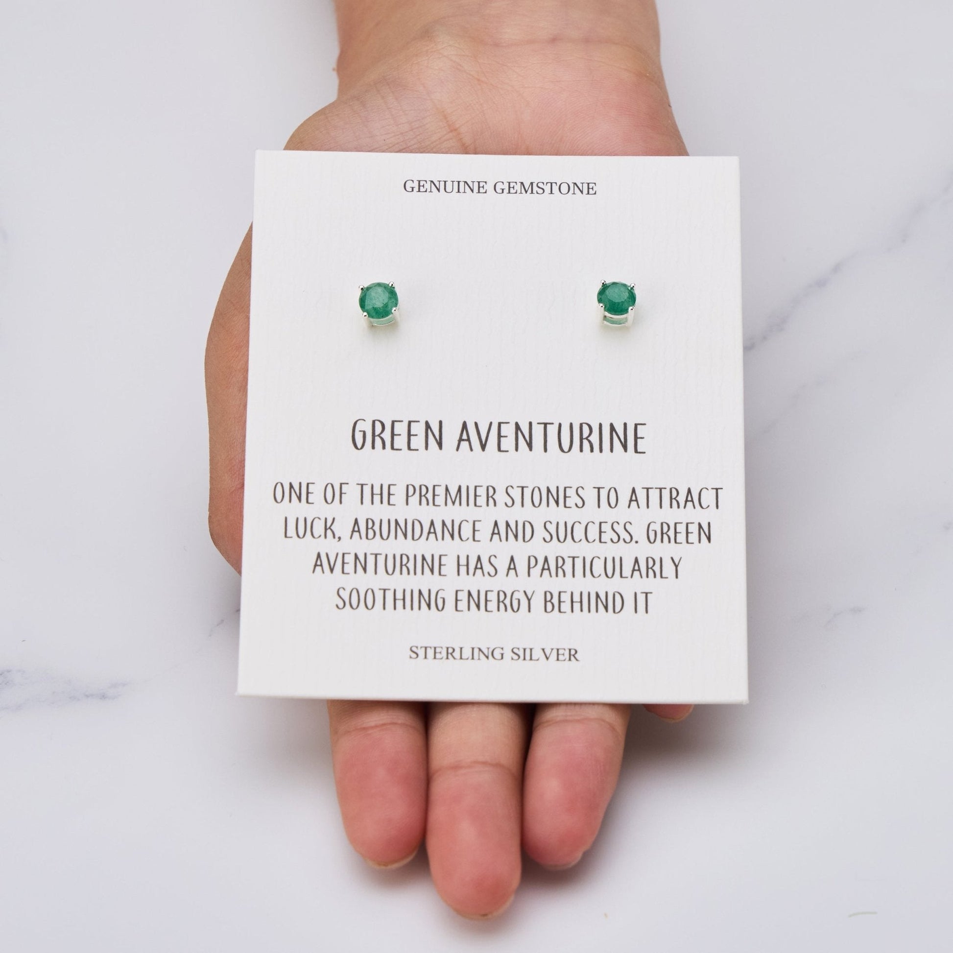 Sterling Silver Green Aventurine Gemstone Earrings with Quote Card