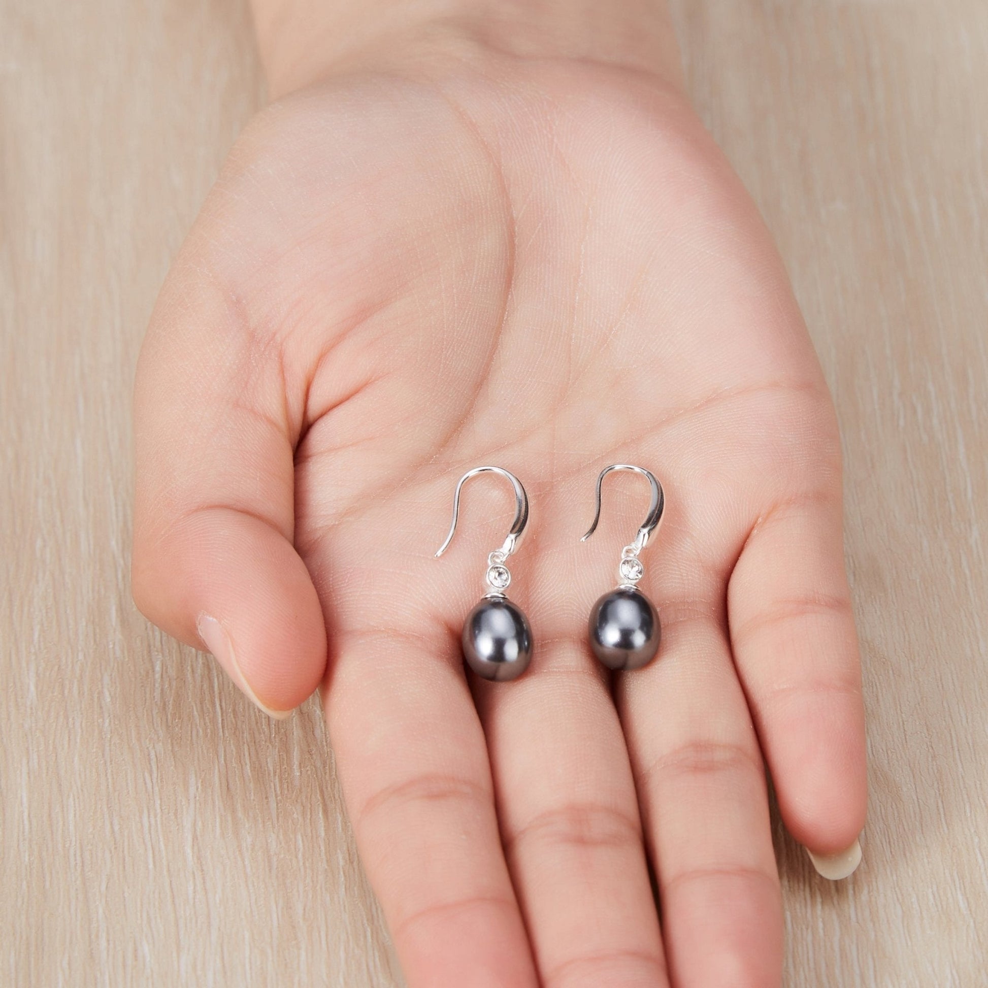Look beautiful on any occasion with these sophisticated Sterling Silver Grey Pearl Drop Earrings created with Zircondia® crystals. Handcrafted by Philip Jones with 925 sterling silver, they feature a shell pearl in an elegant round shape with a grey colour, and two Zircondia® crystals in a round shape with their signature clear colour. With a total weight of 2.9g and French hook closure type, they'll never leave you hanging.